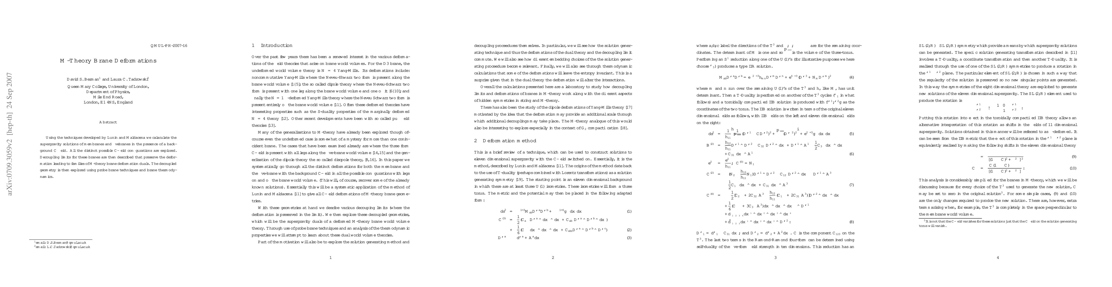 Using the techniques developed by Lunin and Maldacena we calaculate the supergravity solutions of membranes and fivebranes in the presence of a background C field. All the distinct possible C-field configurations are explored. Decoupling limits for these branes are then described that preserve the deformation leading to families of M-theory brane deformation duals. The decoupled geometry is then explored using probe brane techniques and brane thermodynamics.