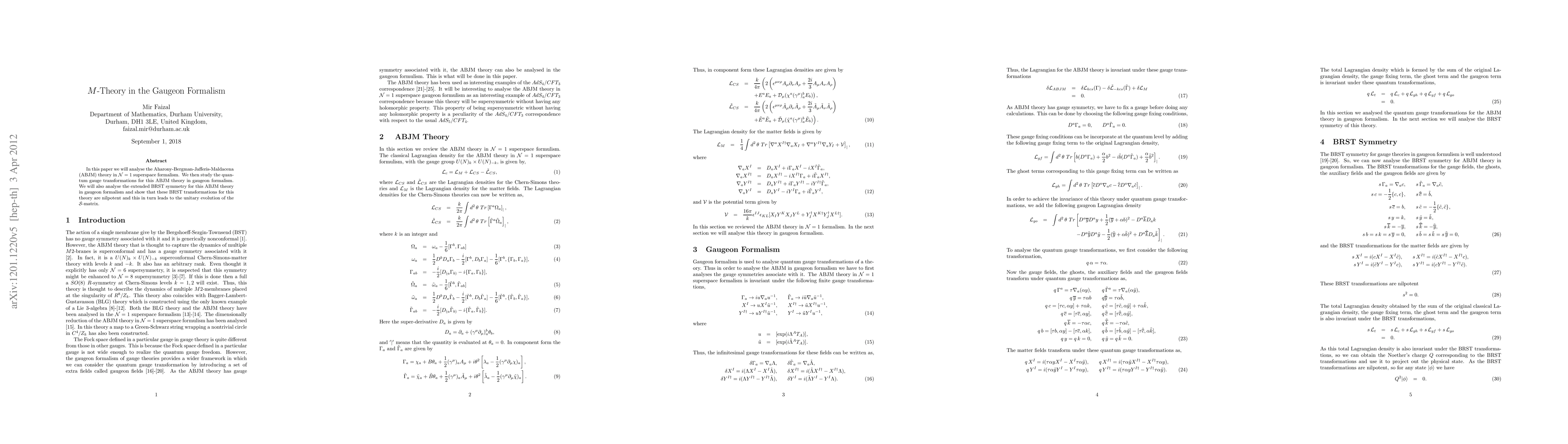 This paper analyzes the $\mathcal{N}=1$ superspace formulation of the ABJM theory and examines its quantum gauge transformations within the gaugeon formalism. It demonstrates that the extended BRST symmetry is nilpotent, ensuring unitary evolution of the $\mathcal{S}$-matrix.