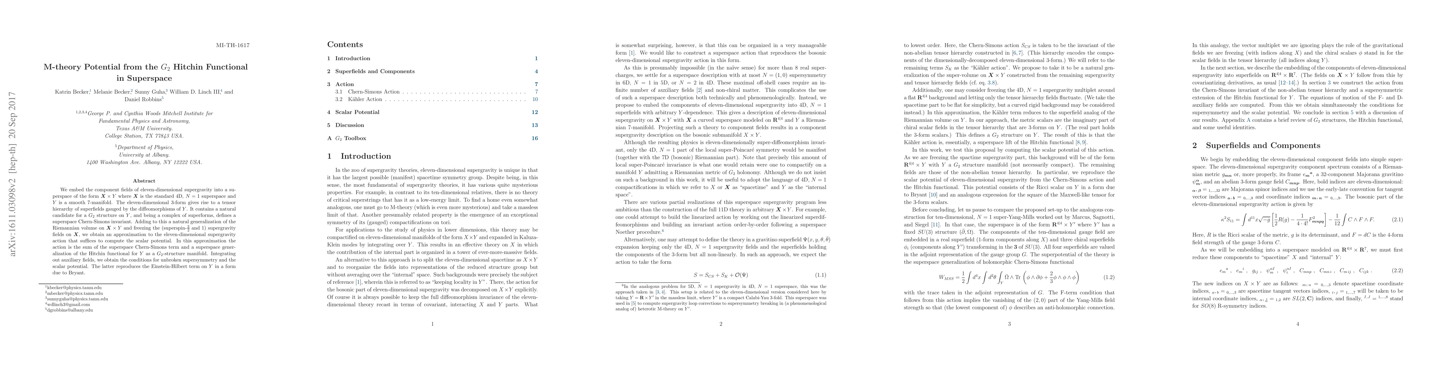 Researchers embed eleven-dimensional supergravity into a superspace and find a natural candidate for a $G_2$ structure on a 7-manifold, which defines a superspace Chern-Simons invariant and approximates the scalar potential.