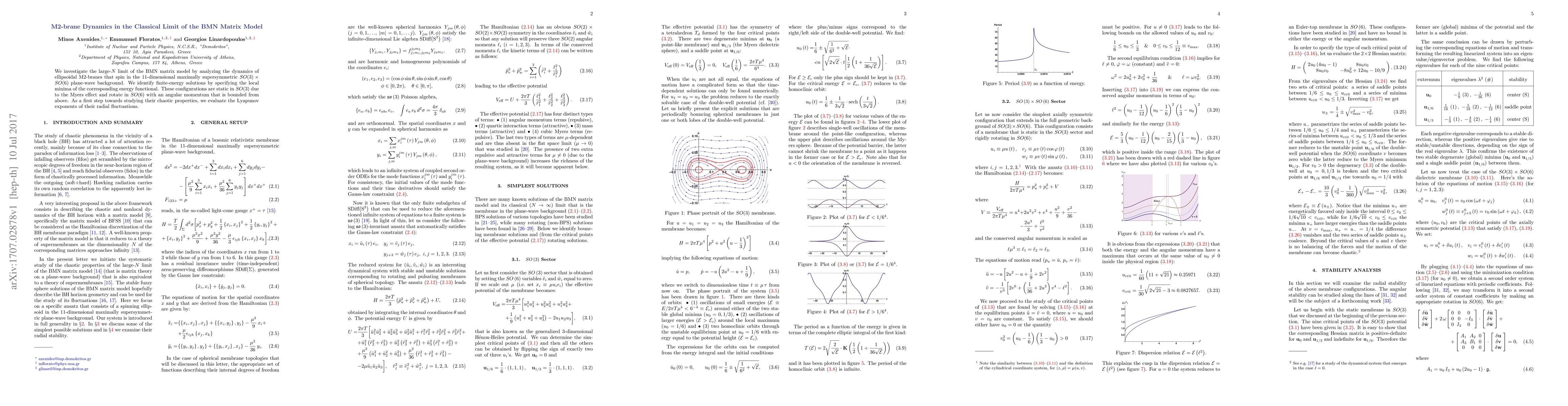 We investigate the large-N limit of the BMN matrix model by analyzing the dynamics of ellipsoidal M2-branes that spin in the 11-dimensional maximally supersymmetric SO(3)xSO(6) plane-wave background. We identify finite-energy solutions by specifying the local minima of the corresponding energy functional. These configurations are static in SO(3) due to the Myers effect and rotate in SO(6) with an angular momentum that is bounded from above. As a first step towards studying their chaotic properties, we evaluate the Lyapunov exponents of their radial fluctuations.