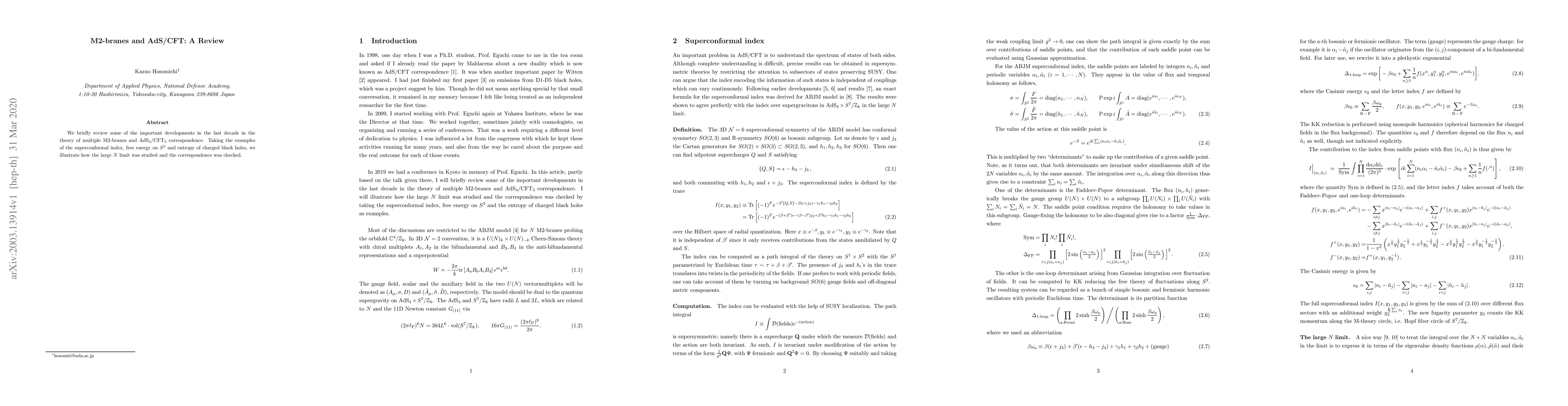 The paper presents detailed equations and methods for studying the large N limit of M2-branes and their connection to AdS/CFT correspondence, including novel approaches to extremizing free energy.