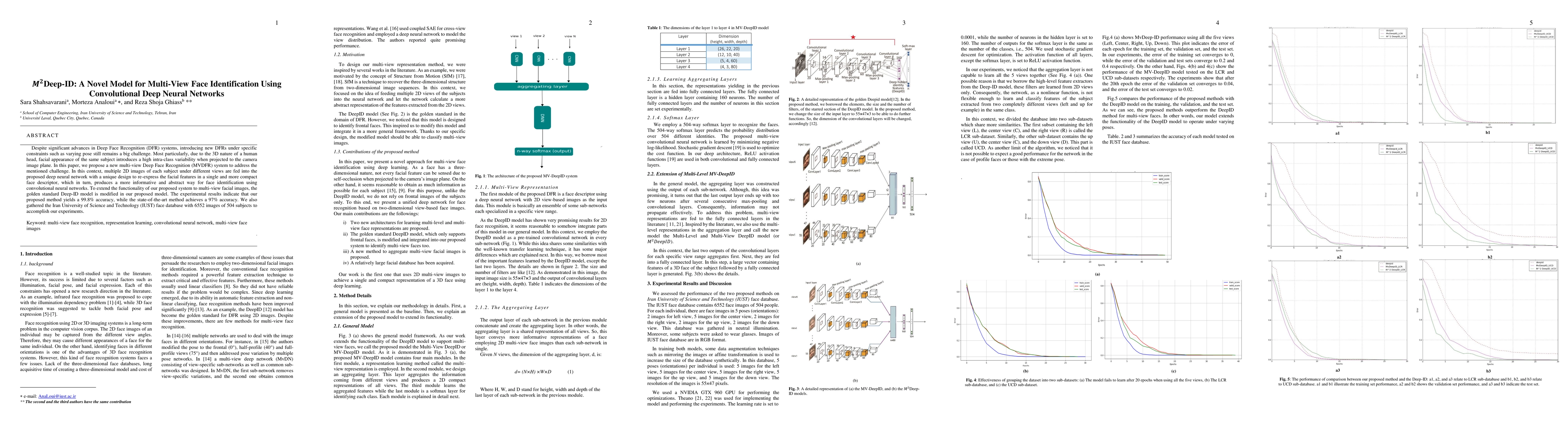 This paper proposes M^2 Deep-ID, a novel multi-view deep face recognition system using convolutional neural networks to address challenges in identifying faces under varying poses. The model achieves 99.8% accuracy, outperforming the state-of-the-art method by 2%, and is tested on a newly created face database from Iran University of Science and Technology.