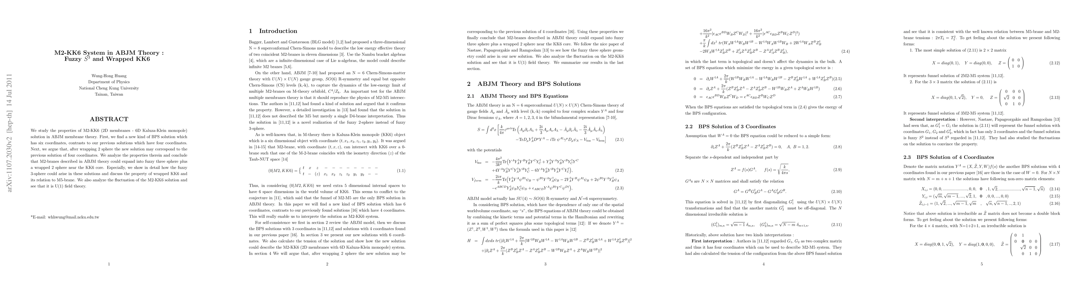 The paper investigates a new BPS solution in ABJM theory for M2-KK6 systems, revealing a six-coordinate configuration that can be related to a four-coordinate solution upon wrapping around a 2-sphere. It concludes that M2-branes can expand into a fuzzy $S^3$ and a wrapped 2-sphere near the KK6 core, and analyzes the fluctuation, finding it corresponds to a U(1) field theory.