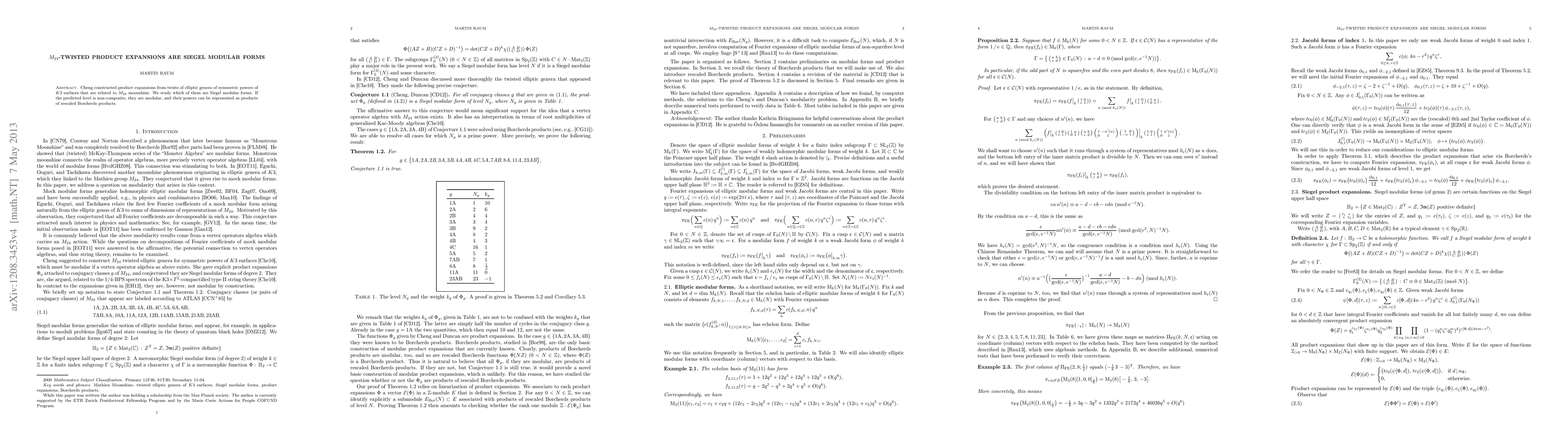 Cheng constructed product expansions from twists of elliptic genera of symmetric powers of K3 surfaces that are related to M_24 moonshine. We study which of them are Siegel modular forms. If the predicted level is non-composite, they are modular, and their powers can be represented as products of rescaled Borcherds products.