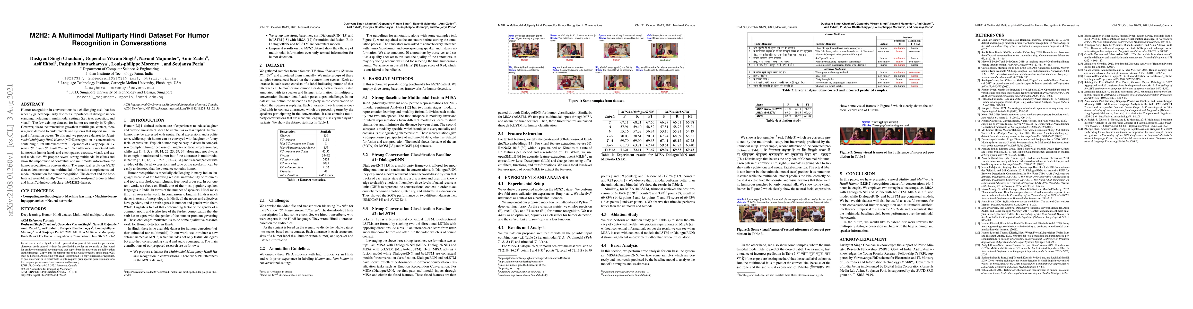 The paper introduces the M2H2 dataset for humor recognition in multimodal Hindi conversations, containing 6,191 annotated utterances from a TV series, capturing humor across text, acoustic, and visual modalities. Empirical results show that multimodal information significantly improves humor recognition over unimodal approaches.
