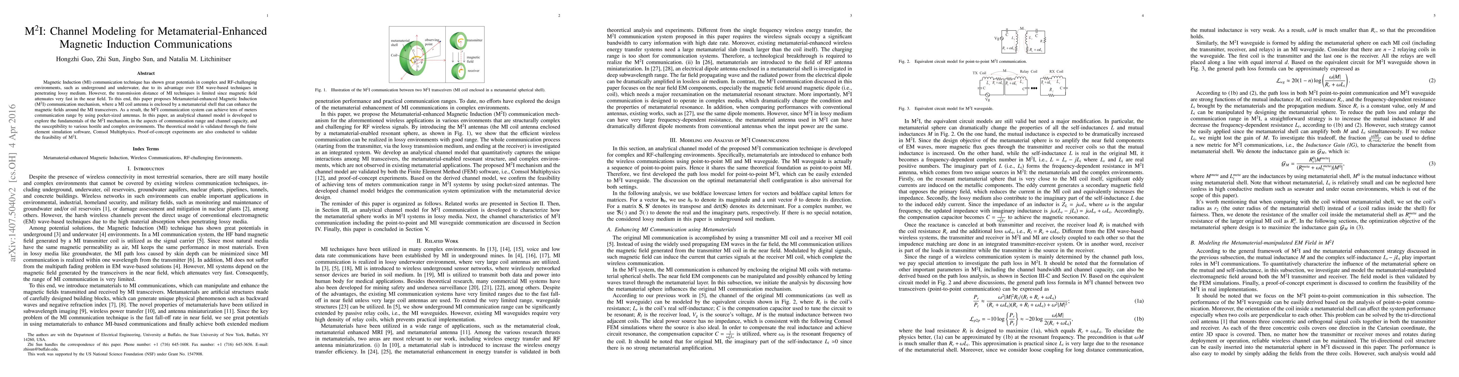 Magnetic Induction (MI) communication technique has shown great potentials in complex and RF-challenging environments, such as underground and underwater, due to its advantage over EM wave-based techniques in penetrating lossy medium. However, the transmission distance of MI techniques is limited since magnetic field attenuates very fast in the near field. To this end, this paper proposes Metamaterial-enhanced Magnetic Induction (M$^2$I) communication mechanism, where a MI coil antenna is enclosed by a metamaterial shell that can enhance the magnetic fields around the MI transceivers. As a result, the M$^2$I communication system can achieve tens of meters communication range by using pocket-sized antennas. In this paper, an analytical channel model is developed to explore the fundamentals of the M$^2$I mechanism, in the aspects of communication range and channel capacity, and the susceptibility to various hostile and complex environments. The theoretical model is validated through the finite element simulation software, Comsol Multiphysics. Proof-of-concept experiments are also conducted to validate the feasibility of M$^2$I.