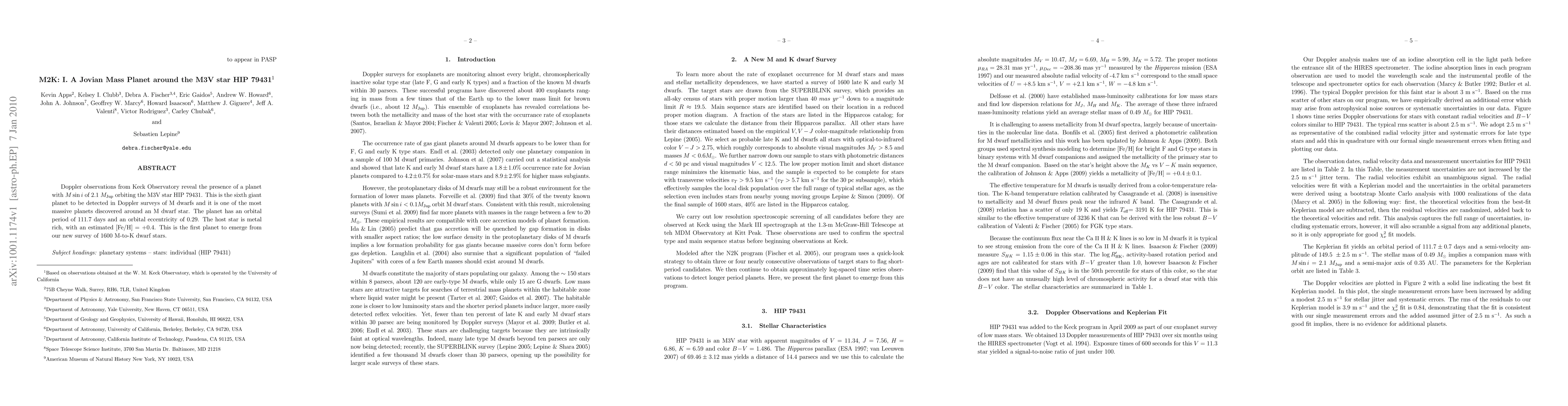 Scientists have discovered a massive planet orbiting an M3V star, HIP79431, with a mass of 2.1 times that of Jupiter and orbital period of 111.7 days, marking the sixth giant planet found around an M dwarf star.