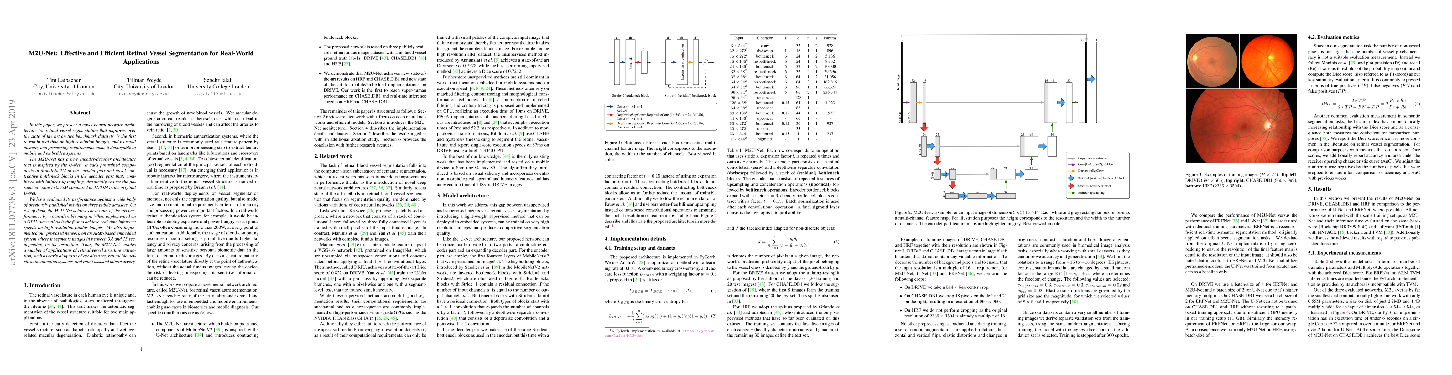 In this paper, we present a novel neural network architecture for retinal vessel segmentation that improves over the state of the art on two benchmark datasets, is the first to run in real time on high resolution images, and its small memory and processing requirements make it deployable in mobile and embedded systems. The M2U-Net has a new encoder-decoder architecture that is inspired by the U-Net. It adds pretrained components of MobileNetV2 in the encoder part and novel contractive bottleneck blocks in the decoder part that, combined with bilinear upsampling, drastically reduce the parameter count to 0.55M compared to 31.03M in the original U-Net. We have evaluated its performance against a wide body of previously published results on three public datasets. On two of them, the M2U-Net achieves new state-of-the-art performance by a considerable margin. When implemented on a GPU, our method is the first to achieve real-time inference speeds on high-resolution fundus images. We also implemented our proposed network on an ARM-based embedded system where it segments images in between 0.6 and 15 sec, depending on the resolution. Thus, the M2U-Net enables a number of applications of retinal vessel structure extraction, such as early diagnosis of eye diseases, retinal biometric authentication systems, and robot assisted microsurgery.