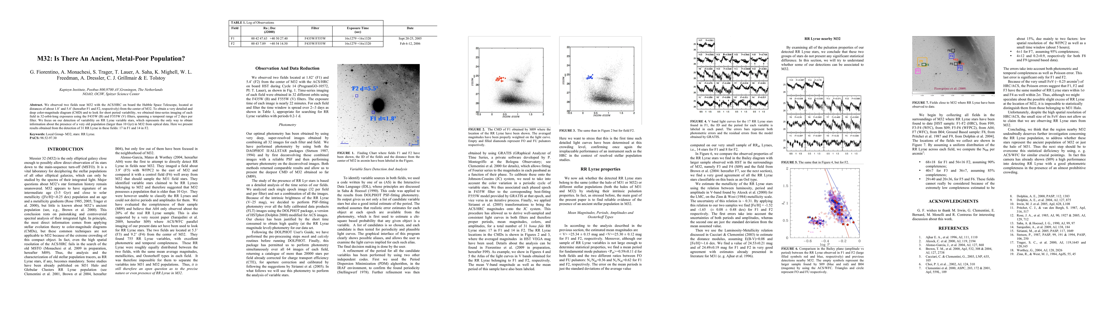 This study uses Hubble Space Telescope observations to detect RR Lyrae variable stars in two fields near M32, aiming to identify an ancient, metal-poor population. The findings reveal 31 RR Lyrae stars, suggesting the presence of a very old stellar population in M32.