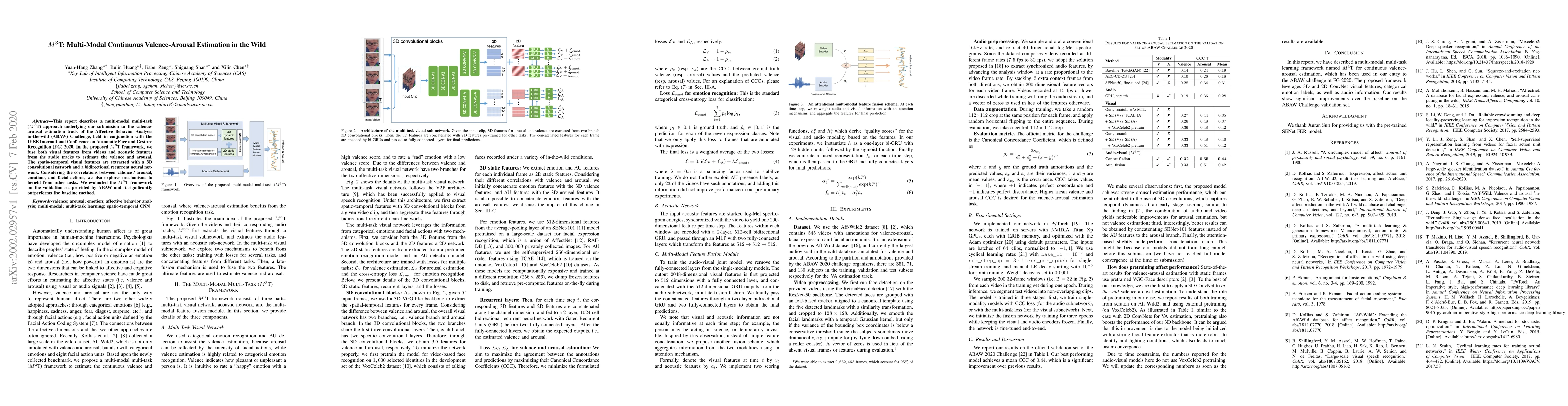 This paper presents a multi-modal multi-task ($M^3$T) framework for estimating valence and arousal from video and audio data, significantly outperforming baseline methods on the ABAW validation set. The approach combines visual and acoustic features using 3D convolutional networks and recurrent neural networks.