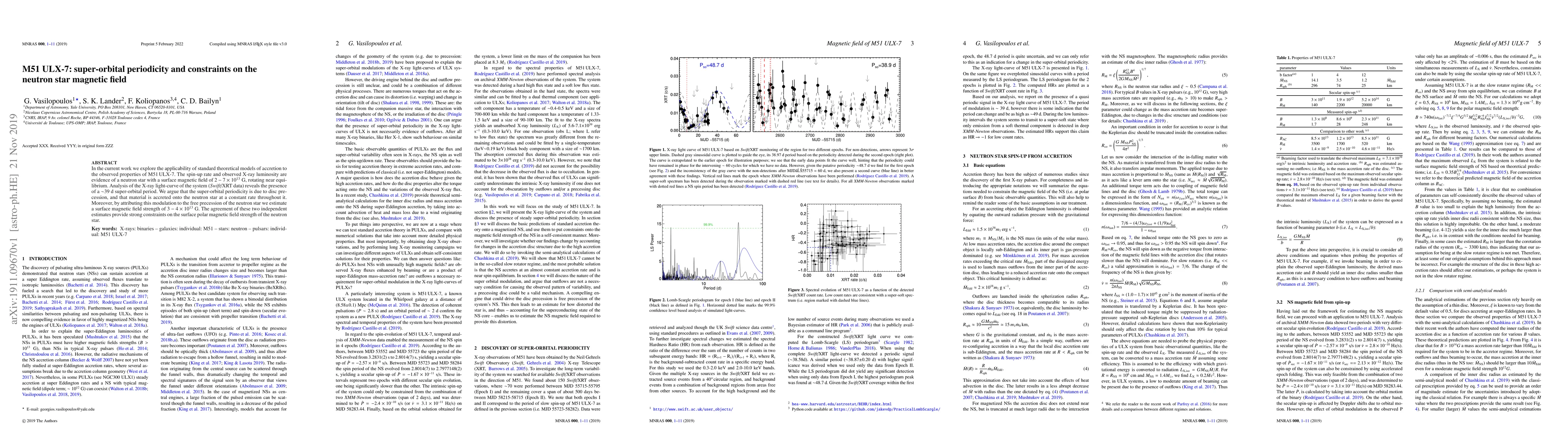 Researchers study a neutron star in M51 ULX-7, finding a strong magnetic field of 3-4x10^13 G and a super-orbital period of ~39 days, constraining the surface polar magnetic field strength.