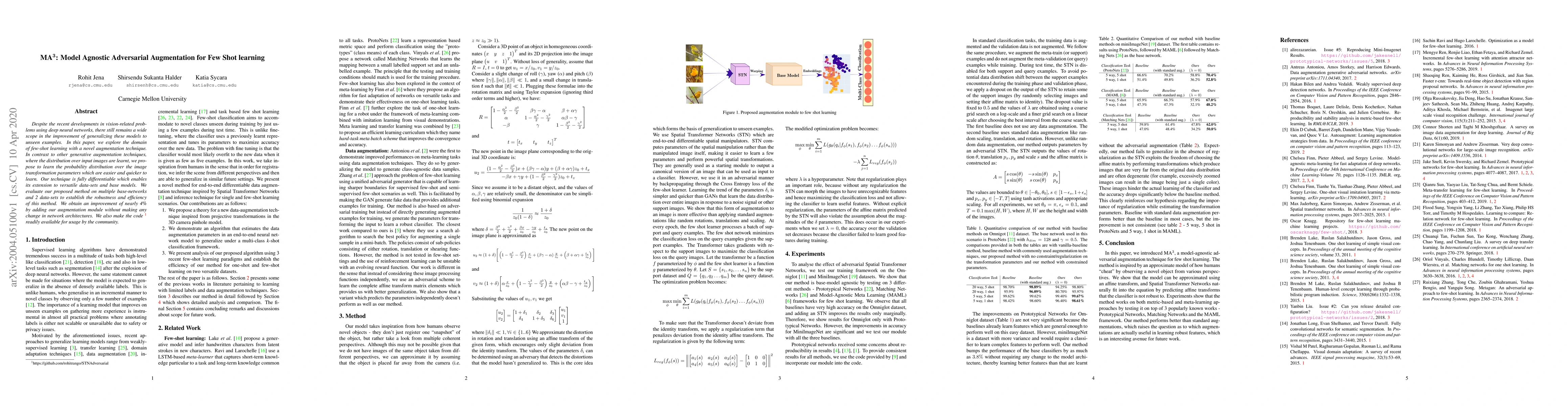 Despite the recent developments in vision-related problems using deep neural networks, there still remains a wide scope in the improvement of generalizing these models to unseen examples. In this paper, we explore the domain of few-shot learning with a novel augmentation technique. In contrast to other generative augmentation techniques, where the distribution over input images are learnt, we propose to learn the probability distribution over the image transformation parameters which are easier and quicker to learn. Our technique is fully differentiable which enables its extension to versatile data-sets and base models. We evaluate our proposed method on multiple base-networks and 2 data-sets to establish the robustness and efficiency of this method. We obtain an improvement of nearly 4% by adding our augmentation module without making any change in network architectures. We also make the code readily available for usage by the community.