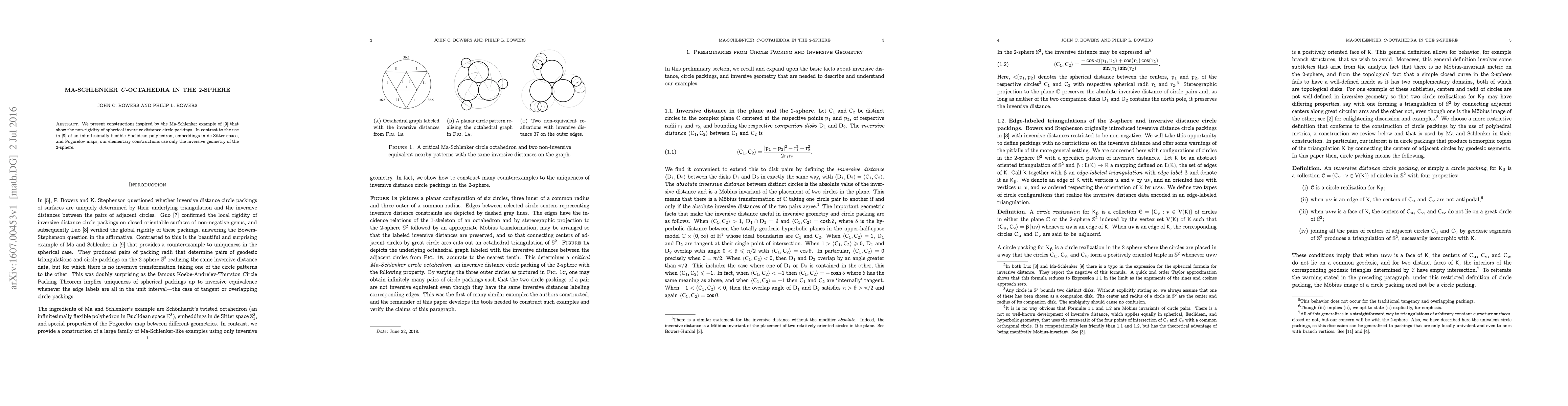 We present constructions inspired by the Ma-Schlenker example of~\cite{Ma:2012hl} that show the non-rigidity of spherical inversive distance circle packings. In contrast to the use in~\cite{Ma:2012hl} of an infinitesimally flexible Euclidean polyhedron, embeddings in de Sitter space, and Pogorelov maps, our elementary constructions use only the inversive geometry of the $2$-sphere.