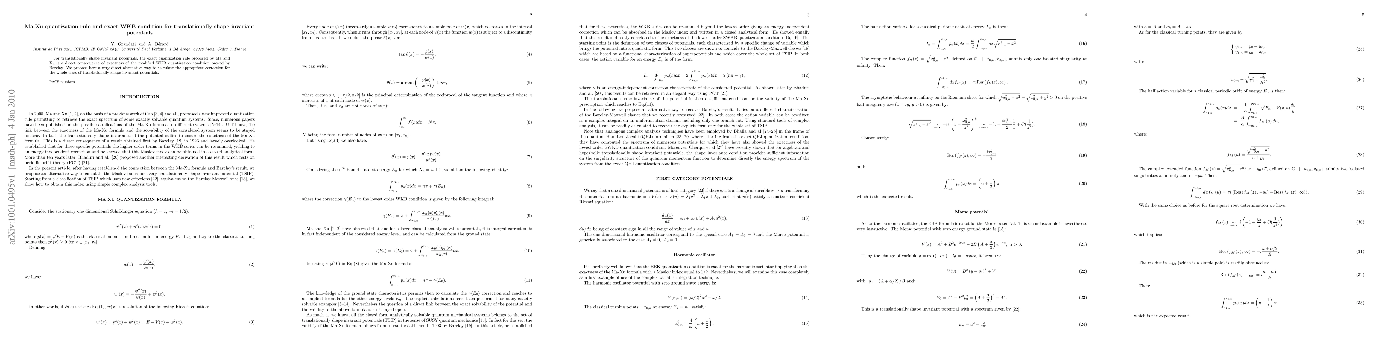 Summary: The paper establishes that Ma and Xu's quantization rule for translationally shape invariant potentials follows from Barclay's exact WKB condition. It also presents an alternative method for calculating the necessary correction for this class of potentials.