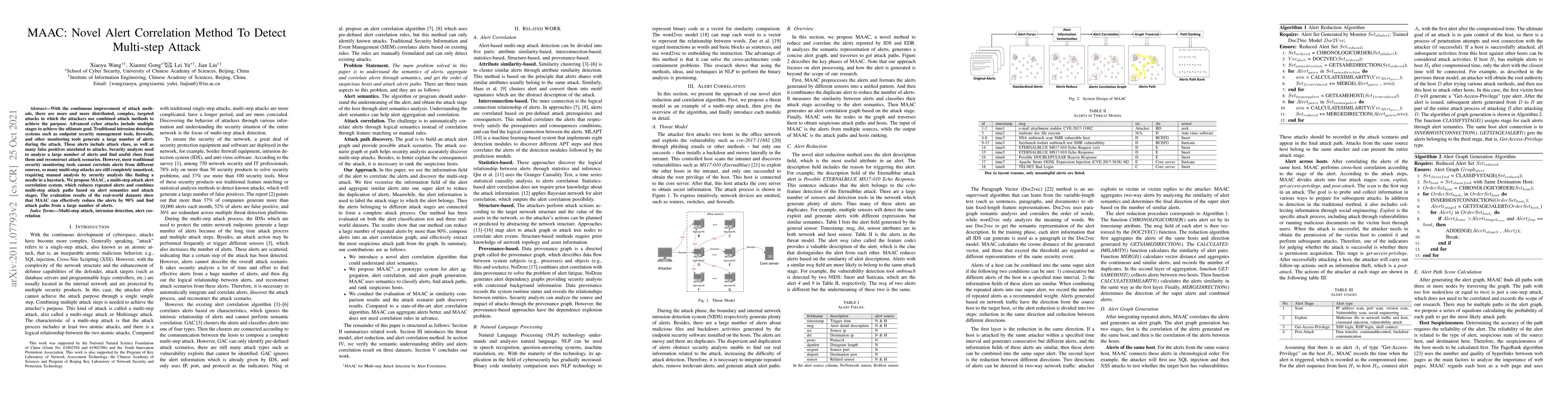 The paper introduces MAAC, a novel alert correlation method designed to detect multi-step cyber attacks by combining alerts from different sources and reducing false positives. Evaluations demonstrate MAAC can reduce alerts by 90% and effectively reconstruct attack scenarios.