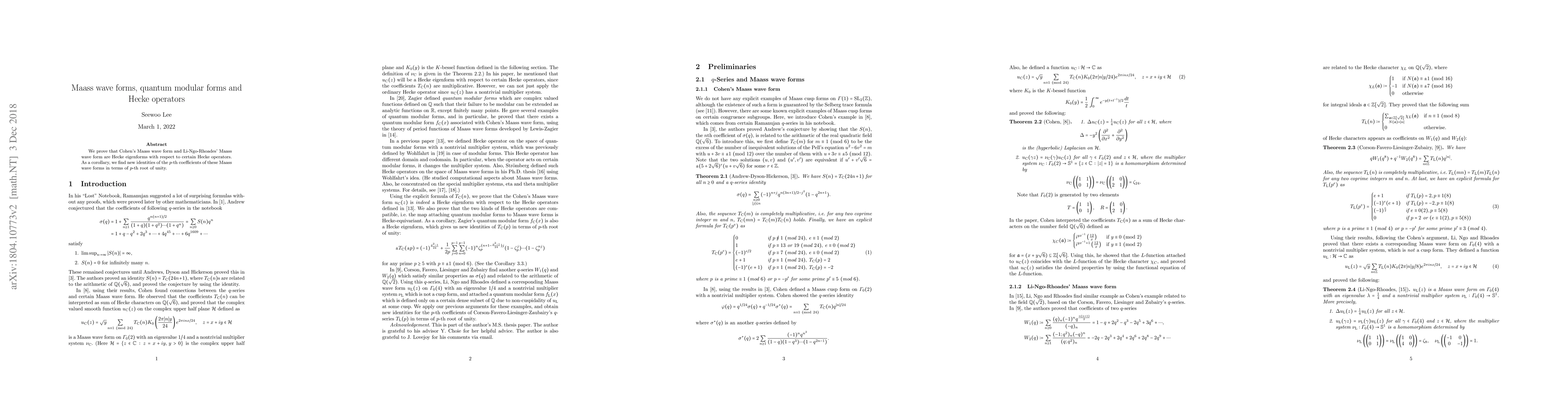 Summary: The paper establishes that Cohen's Maass wave form and Li-Ngo-Rhoades' Maass wave form are Hecke eigenforms, revealing new identities for their $p$th coefficients expressed in terms of $p$th roots of unity.