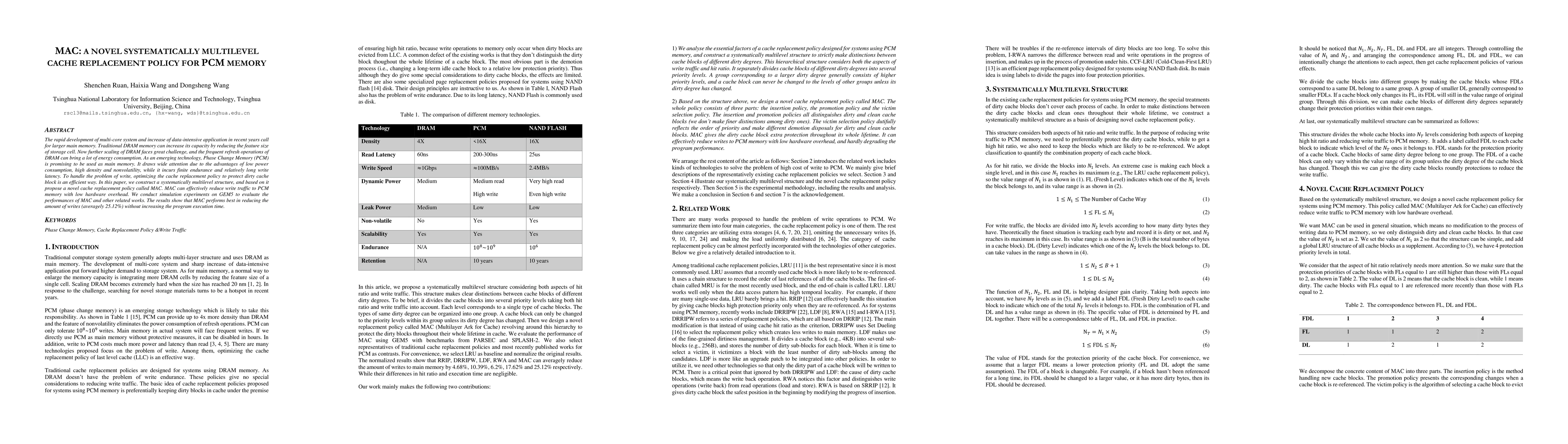 This paper proposes MAC, a novel multilevel cache replacement policy for Phase Change Memory (PCM) to reduce write traffic and optimize performance. The MAC policy effectively minimizes write operations to PCM with minimal hardware overhead, achieving a 25.12% reduction in writes without impacting execution time.