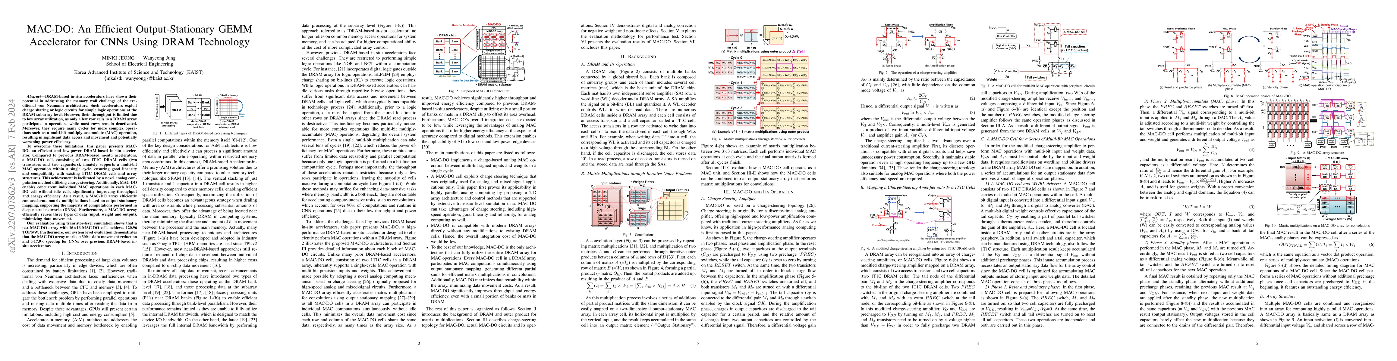 This paper introduces MAC-DO, a low-power DRAM-based accelerator for CNNs that efficiently performs multi-bit MAC operations within a single cycle using charge steering. It enhances throughput and energy efficiency by utilizing all DRAM cells concurrently, thus significantly accelerating matrix multiplications in deep neural networks.
