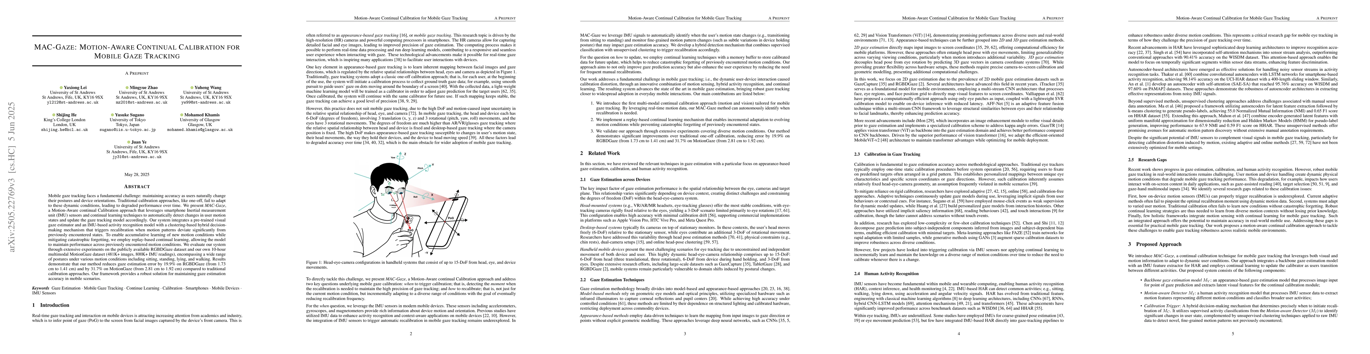 This research paper introduces MAC-Gaze, a motion-aware continual calibration approach for mobile gaze tracking that uses IMU sensors to adapt to changing user postures and device orientations, achieving improved accuracy over traditional methods.