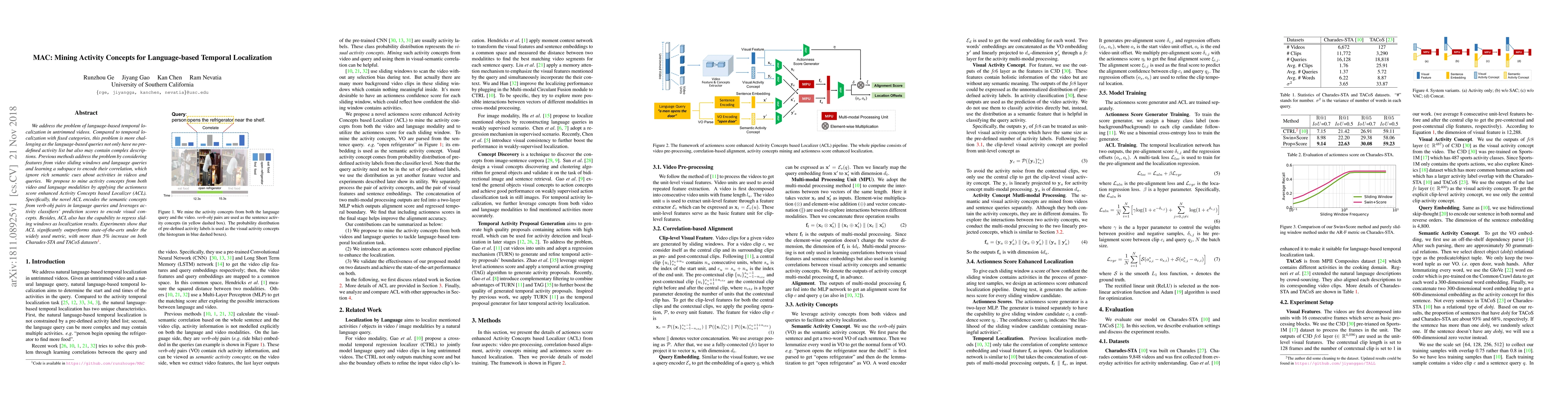 This paper proposes a novel method called Actionness Score Enhanced Activity Concepts based Localizer (ACL) to improve language-based temporal localization in untrimmed videos. ACL mines activity concepts from both video and language modalities, significantly outperforming state-of-the-art methods by more than 5% on Charades-STA and TACoS datasets.