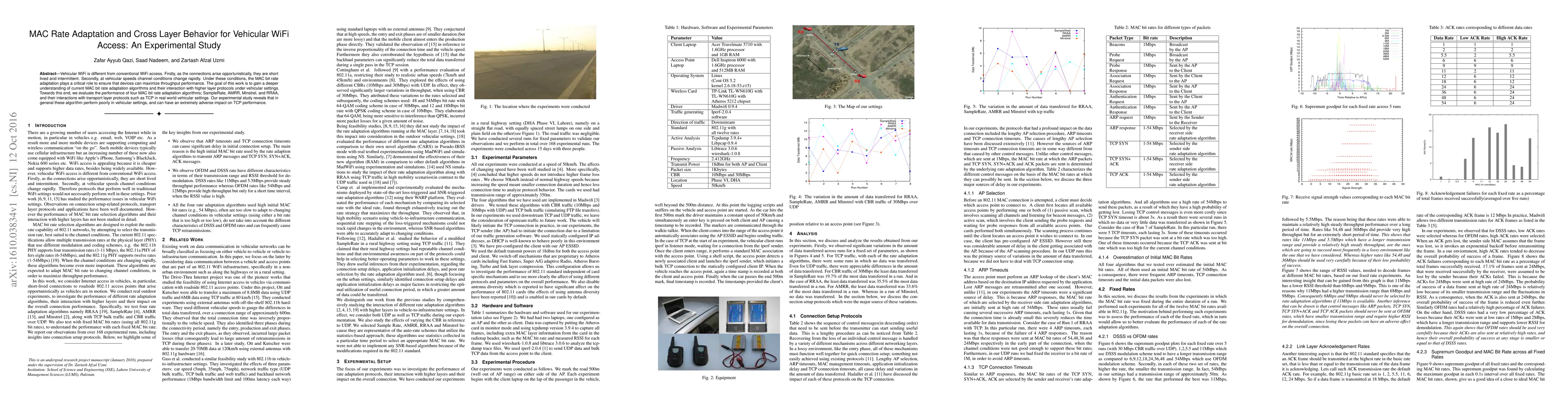 This study investigates the performance of four MAC rate adaptation algorithms—SampleRate, AMRR, Minstrel, and RRAA—under vehicular WiFi conditions, revealing their poor performance and significant adverse effects on TCP throughput in real-world settings. The research highlights the challenges of rapidly changing channel conditions in vehicular networks.