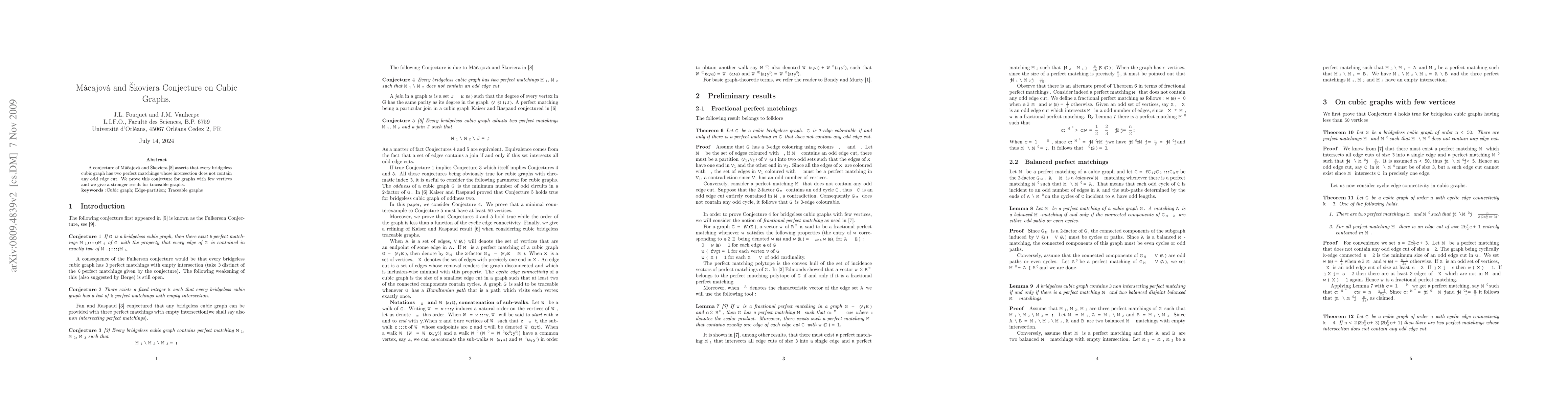 Summary: M\'acajov\'a and \v{S}koviera's conjecture on bridgeless cubic graphs is proven for graphs with few vertices, and a stronger result is established for traceable graphs, showing the existence of two perfect matchings without any odd edge cut intersection.