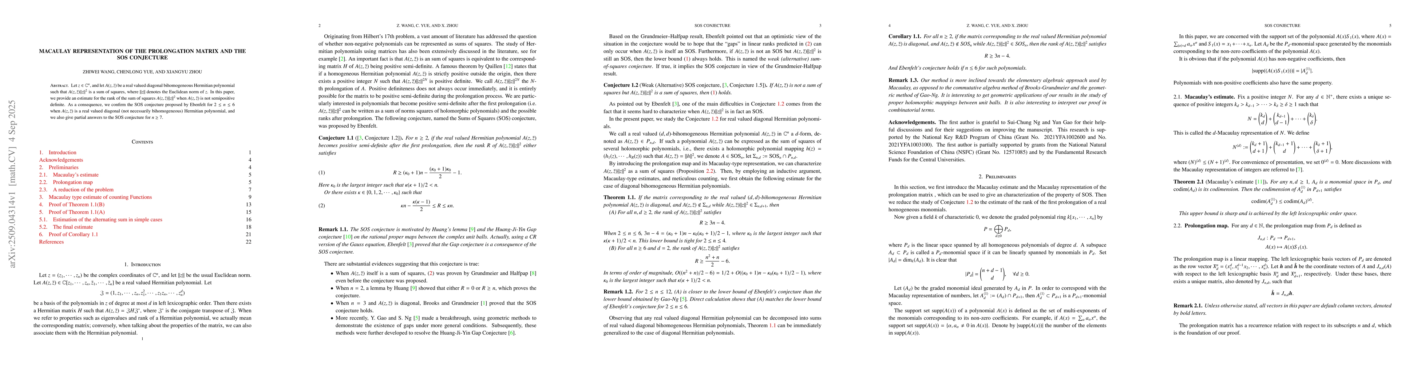 Let $z \in \mathbb{C}^n$, and let $A(z,\bar{z})$ be a real valued diagonal bihomogeneous Hermitian polynomial such that $A(z,\bar{z})\|z\|^2$ is a sum of squares, where $\|z\|$ denotes the Euclidean norm of $z$. In this paper, we provide an estimate for the rank of the sum of squares $A(z,\bar{z})\|z\|^2$ when $A(z,\bar{z})$ is not semipositive definite. As a consequence, we confirm the SOS conjecture proposed by Ebenfelt for $2 \leq n \leq 6$ when $A(z,\bar{z})$ is a real valued diagonal (not necessarily bihomogeneous) Hermitian polynomial, and we also give partial answers to the SOS conjecture for $n\geq 7$.