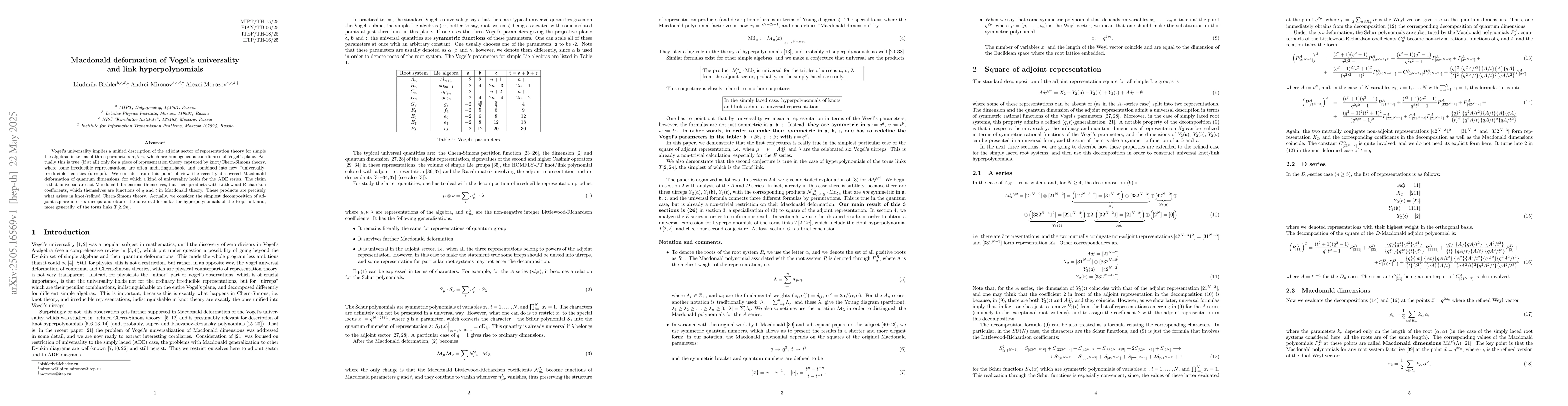 The research paper explores how the Macdonald deformation relates to Vogel's universality in representation theory, revealing a deeper connection between knot/Chern-Simons theory and hyperpolynomials of torus links.