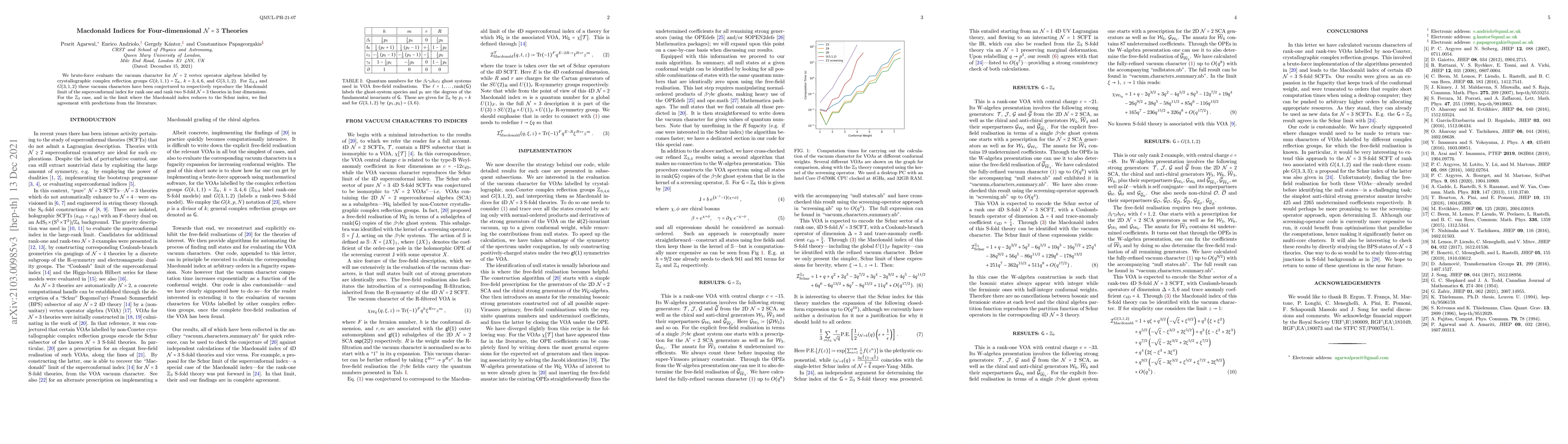 We brute-force evaluate the vacuum character for $\mathcal N=2$ vertex operator algebras labelled by crystallographic complex reflection groups $G(k,1,1)=\mathbb Z_k$, $k=3,4,6$, and $G(3,1,2)$. For $\mathbb Z_{3,4}$ and $G(3,1,2)$ these vacuum characters have been conjectured to respectively reproduce the Macdonald limit of the superconformal index for rank one and rank two S-fold $\mathcal N=3$ theories in four dimensions. For the $\mathbb Z_3$ case, and in the limit where the Macdonald index reduces to the Schur index, we find agreement with predictions from the literature.