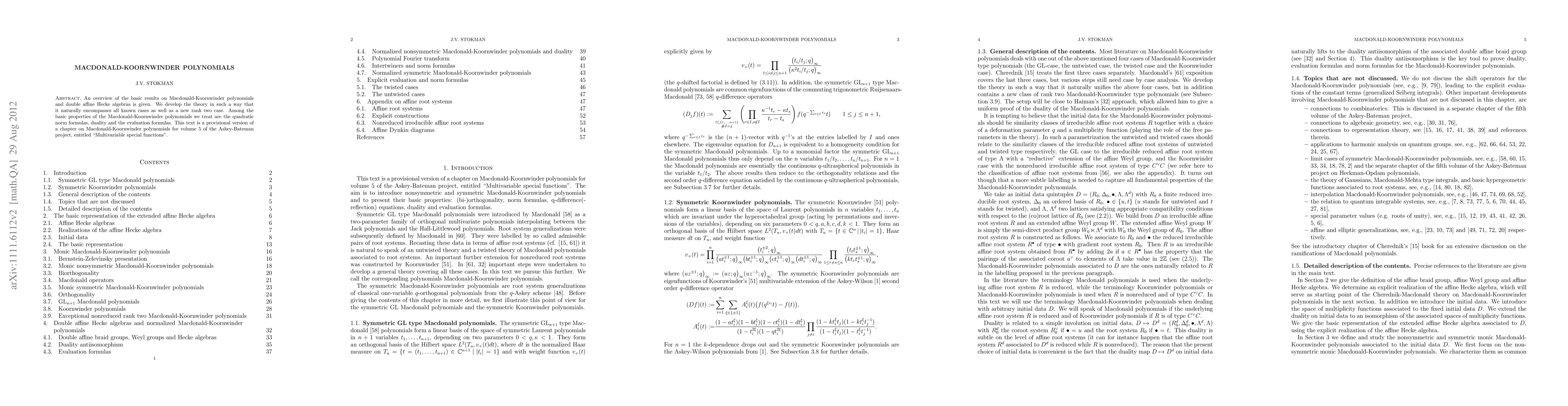 An overview of the basic results on Macdonald(-Koornwinder) polynomials and double affine Hecke algebras is given. We develop the theory in such a way that it naturally encompasses all known cases. Among the basic properties of the Macdonald polynomials we treat are the quadratic norm formulas, duality and the evaluation formulas. This text is a provisional version of a chapter on Macdonald polynomials for volume 5 of the Askey-Bateman project, entitled "Multivariable special functions".