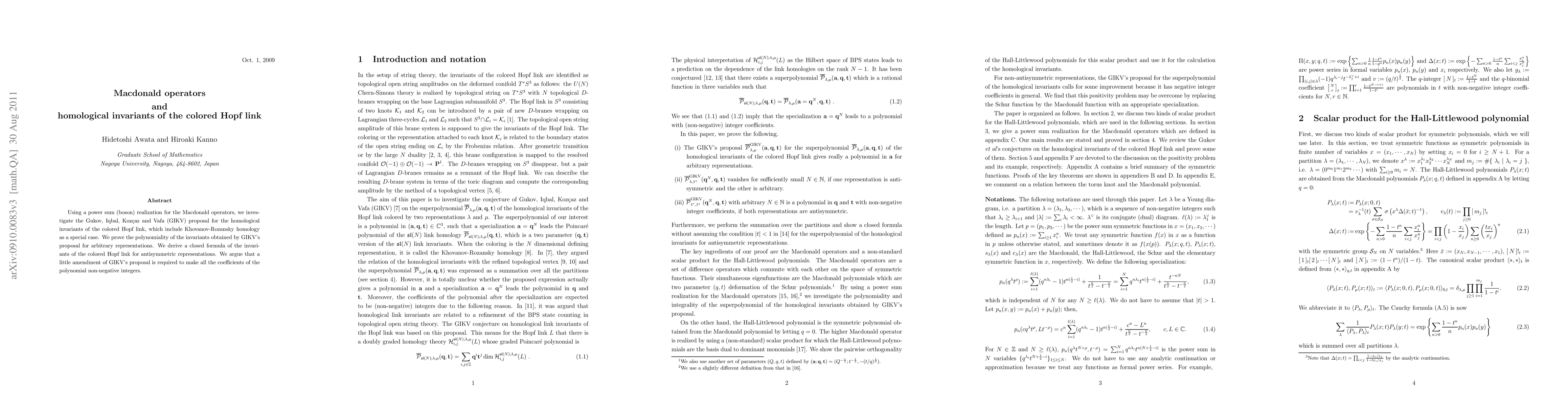 Summary: This paper explores the Gukov et al. proposal for homological invariants of the colored Hopf link using Macdonald operators, proving the polynomiality of these invariants and deriving a closed formula for antisymmetric representations. It also suggests a minor adjustment to ensure all polynomial coefficients are non-negative integers.