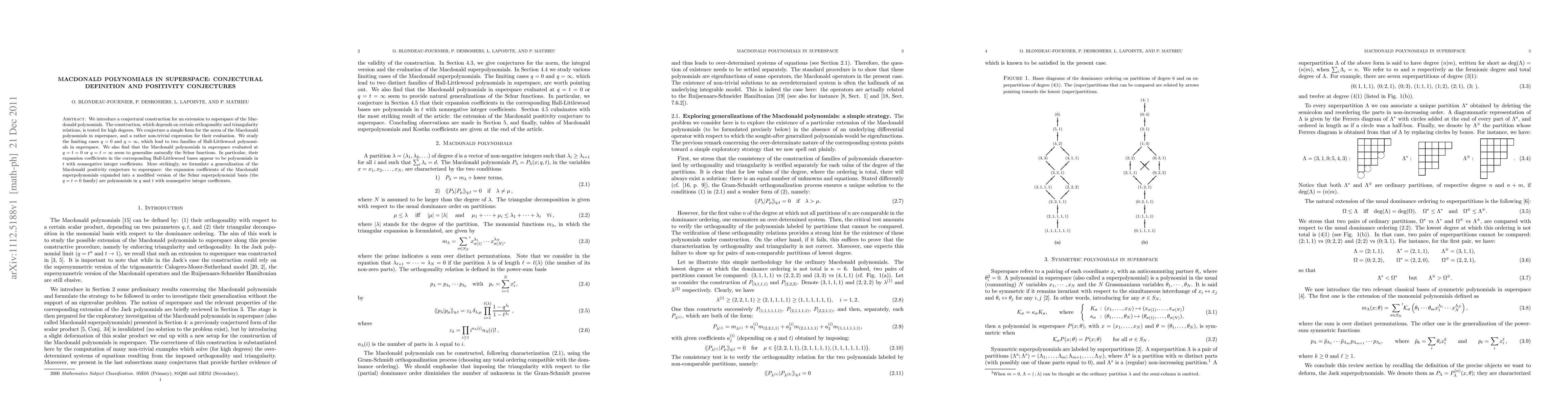 The paper proposes a conjectured construction for Macdonald polynomials in superspace, extending their properties and examining positivity conjectures. The study reveals that the expansion coefficients of Macdonald superpolynomials in a modified Schur basis are nonnegative polynomials, suggesting a generalization of the Macdonald positivity conjecture.