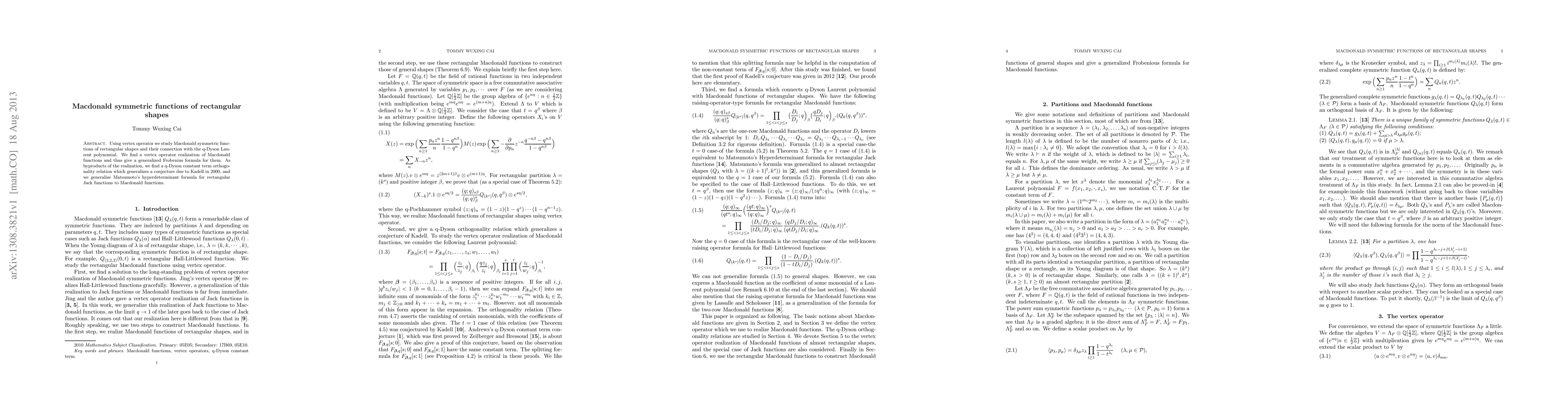 This paper utilizes vertex operators to study Macdonald symmetric functions for rectangular shapes, establishing a vertex operator realization and providing a generalized Frobenius formula. It also yields a q-Dyson constant term orthogonality relation and generalizes Matsumoto's hyperdeterminant formula for Macdonald functions.