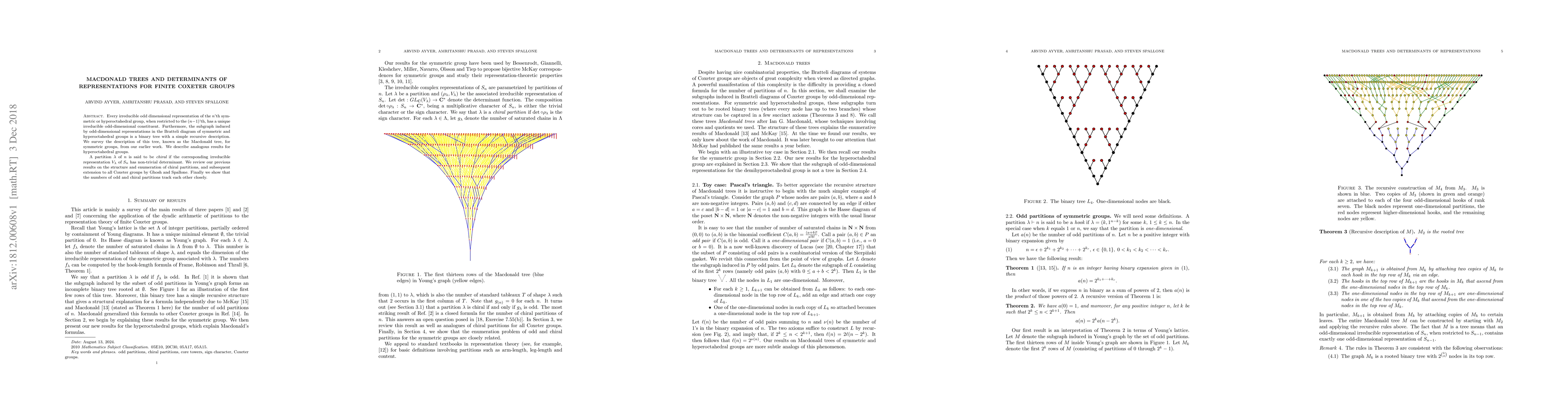 Every irreducible odd dimensional representation of the $n$'th symmetric or hyperoctahedral group, when restricted to the $(n-1)$'th, has a unique irreducible odd-dimensional constituent. Furthermore, the subgraph induced by odd-dimensional representations in the Bratteli diagram of symmetric and hyperoctahedral groups is a binary tree with a simple recursive description. We survey the description of this tree, known as the Macdonald tree, for symmetric groups, from our earlier work. We describe analogous results for hyperoctahedral groups. A partition $\lambda$ of $n$ is said to be chiral if the corresponding irreducible representation $V_\lambda$ of $S_n$ has non-trivial determinant. We review our previous results on the structure and enumeration of chiral partitions, and subsequent extension to all Coxeter groups by Ghosh and Spallone. Finally we show that the numbers of odd and chiral partitions track each other closely.