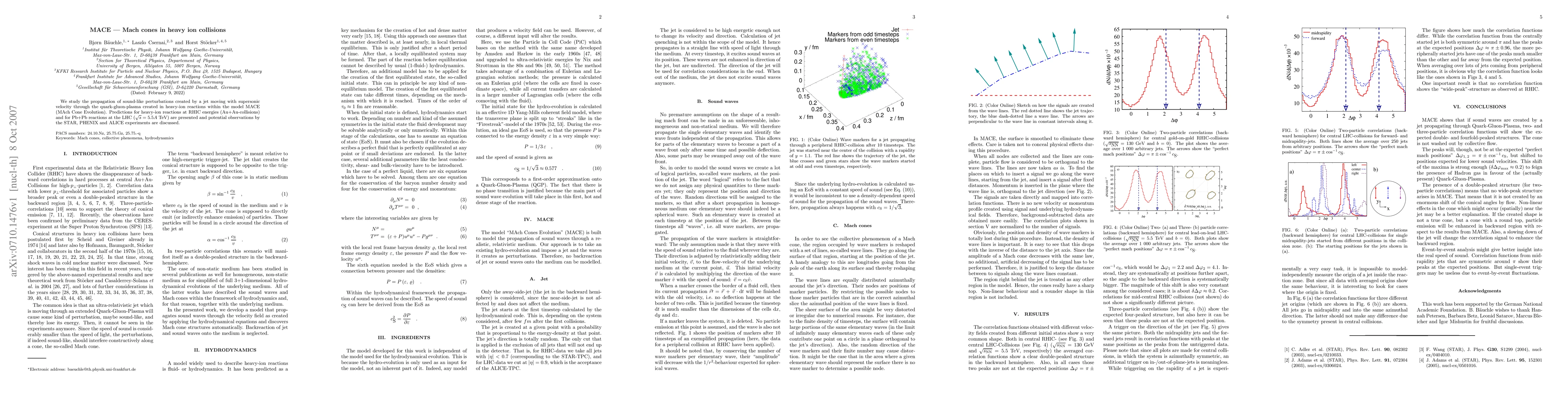 We study the propagation of sound-like perturbations created by a jet moving with supersonic velocity through the quark-gluon-plasma created in heavy-ion reactions within the model MACE (MAch Cone Evolution). Predictions for heavy-ion reactions at RHIC energies (Au+Au-collisions) and for Pb+Pb reactions at the LHC ($\sqrt s=5.5A$ TeV) are presented and potential observations by the STAR, PHENIX and ALICE experiments are discussed.