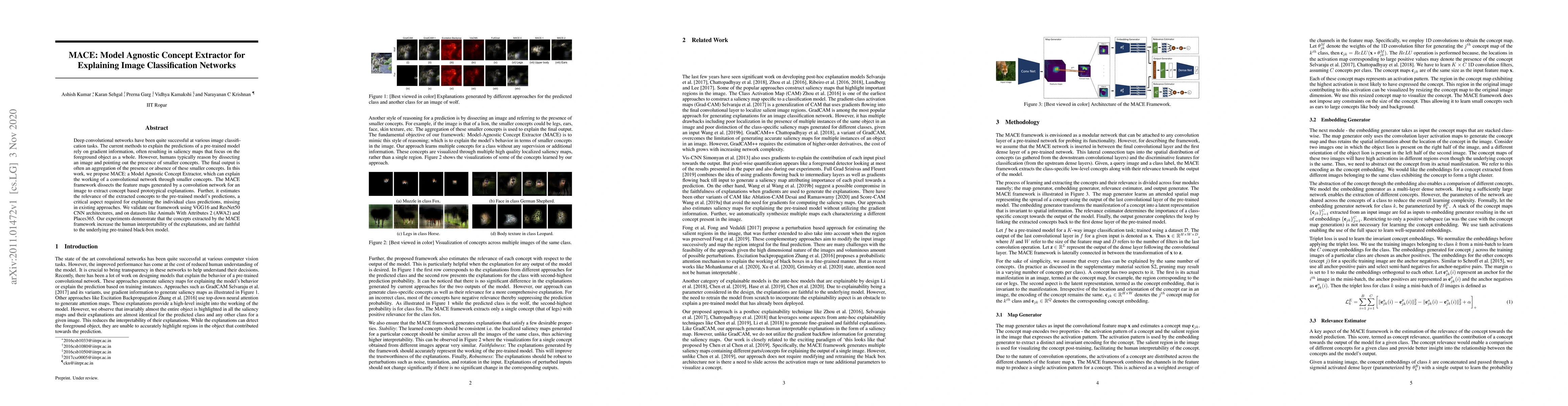 The paper introduces MACE, a Model Agnostic Concept Extractor, to provide detailed, concept-based explanations for image classification networks. MACE dissects feature maps to extract smaller, interpretable concepts, enhancing human understanding of model predictions beyond traditional saliency maps.