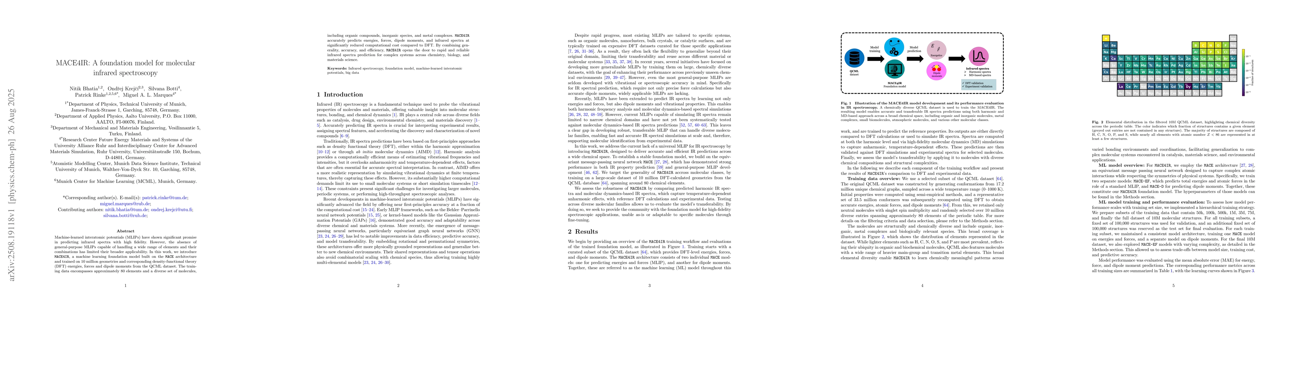 Machine-learned interatomic potentials (MLIPs) have shown significant promise in predicting infrared spectra with high fidelity. However, the absence of general-purpose MLIPs capable of handling a wide range of elements and their combinations has limited their broader applicability. In this work, we introduce MACE4IR, a machine learning foundation model built on the MACE architecture and trained on 10 million geometries and corresponding density-functional theory (DFT) energies, forces and dipole moments from the QCML dataset. The training data encompasses approximately 80 elements and a diverse set of molecules, including organic compounds, inorganic species, and metal complexes. MACE4IR accurately predicts energies, forces, dipole moments, and infrared spectra at significantly reduced computational cost compared to DFT. By combining generality, accuracy, and efficiency, MACE4IR opens the door to rapid and reliable infrared spectra prediction for complex systems across chemistry, biology, and materials science.