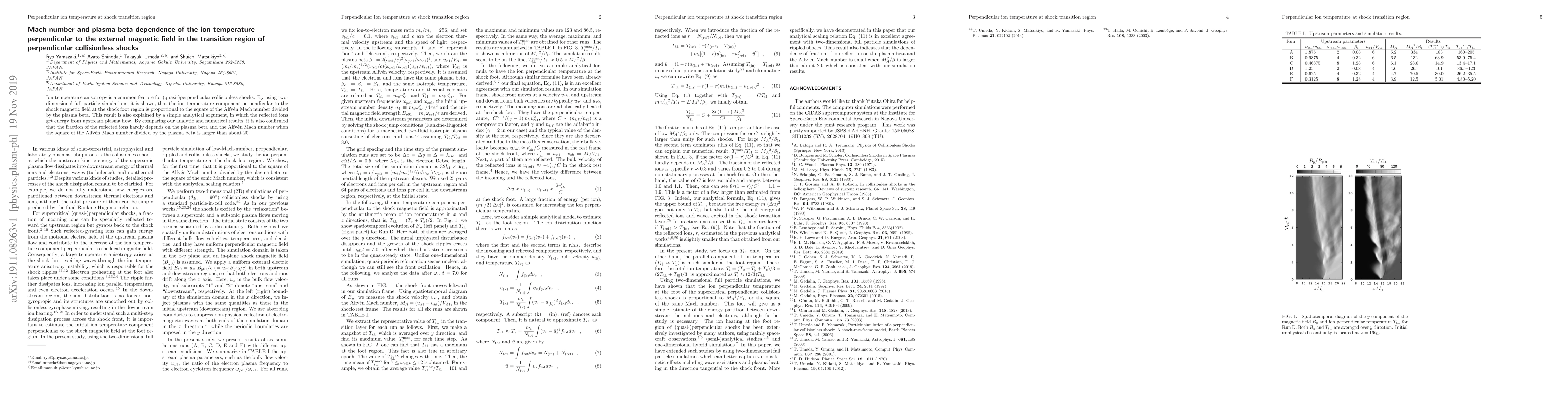 This paper investigates the relationship between ion temperature anisotropy and the Alfven Mach number and plasma beta in quasi-perpendicular collisionless shocks. Using particle simulations and analytical arguments, it finds that the perpendicular ion temperature scales with the square of the Alfven Mach number divided by plasma beta, with minimal dependence on these factors when their ratio exceeds 20.
