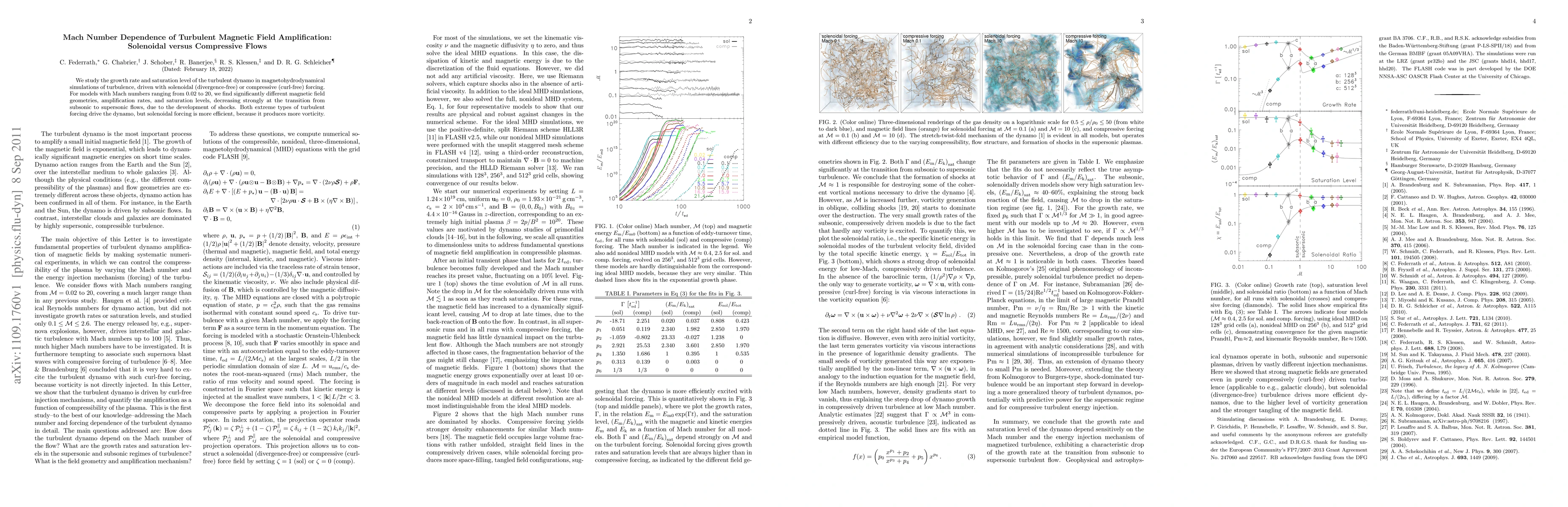 This study investigates the turbulent dynamo's growth rate and saturation level in magnetohydrodynamical simulations, revealing that solenoidal and compressive flows produce different magnetic field amplifications. The transition from subsonic to supersonic flows, marked by shock development, significantly reduces amplification efficiency.