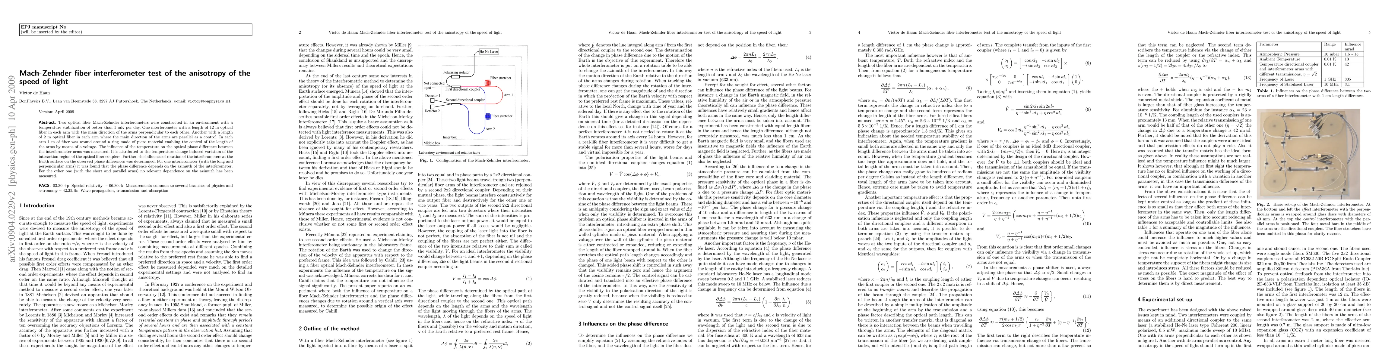 Two optical fiber Mach-Zehnder interferometers were constructed in an environment with a temperature stabilization of better than 1 mK per day. One interferometer with a length of 12 m optical fiber in each arm with the main direction of the arms perpendicular to each other. Another with a length of 2 m optical fiber in each arm where the main direction of the arms are parallel as a control. In each arm 1 m of fiber was wound around a ring made of piezo material enabling the control of the length of the arms by means of a voltage. The influence of the temperature on the optical phase difference between the interferometer arms was measured. It is attributed to the temperature change induced variation of the interaction region of the optical fiber couplers. Further, the influence of rotation of the interferometers at the Earth surface on the observed phase differences was determined. For one interferometer (with the long and perpendicular arms) it was found that the phase difference depends on the azimuth of the interferometer. For the other one (with the short and parallel arms) no relevant dependence on the azimuth has been measured.