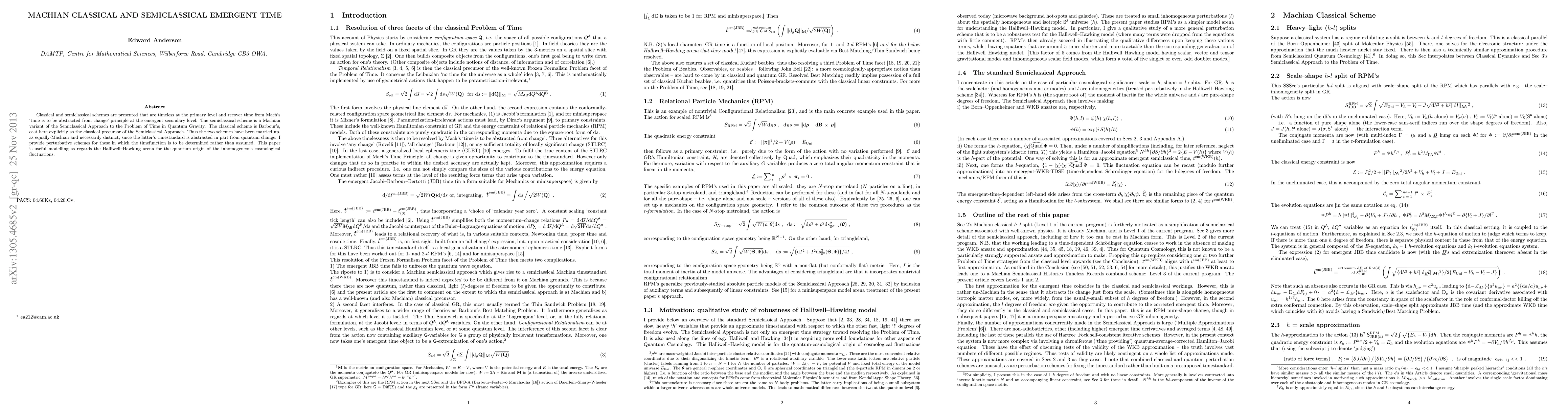 Two schemes for emergent time in classical and semiclassical physics are presented, both rooted in Mach's principle, and recover time as an abstracted secondary level from primary timeless change.