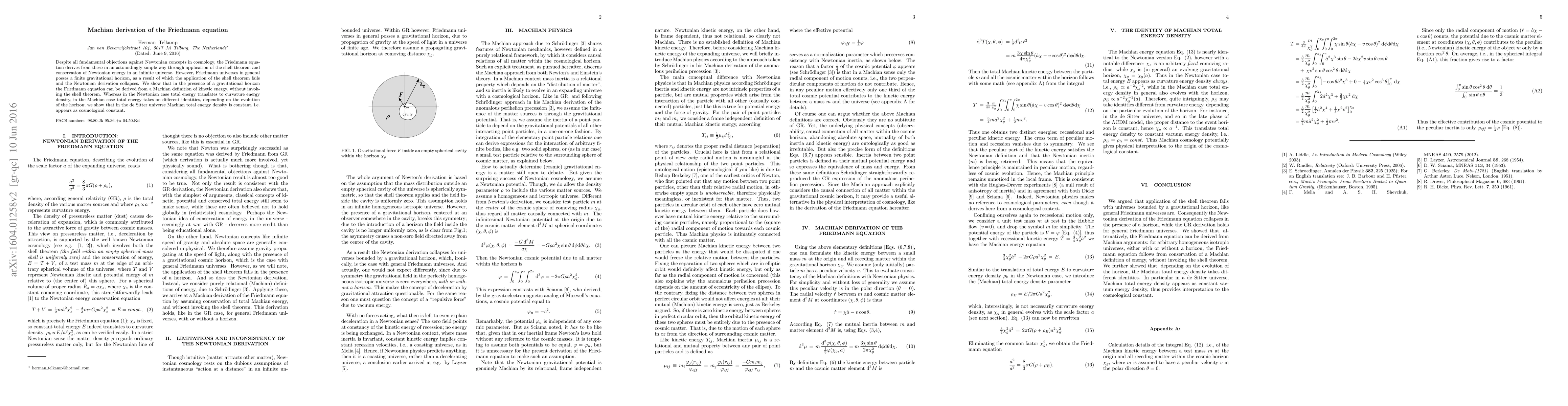 The paper presents a novel Machian derivation of the Friedmann equation, introducing relational definitions of kinetic and inertial energies, and demonstrates how total energy density can take different forms depending on horizon evolution.