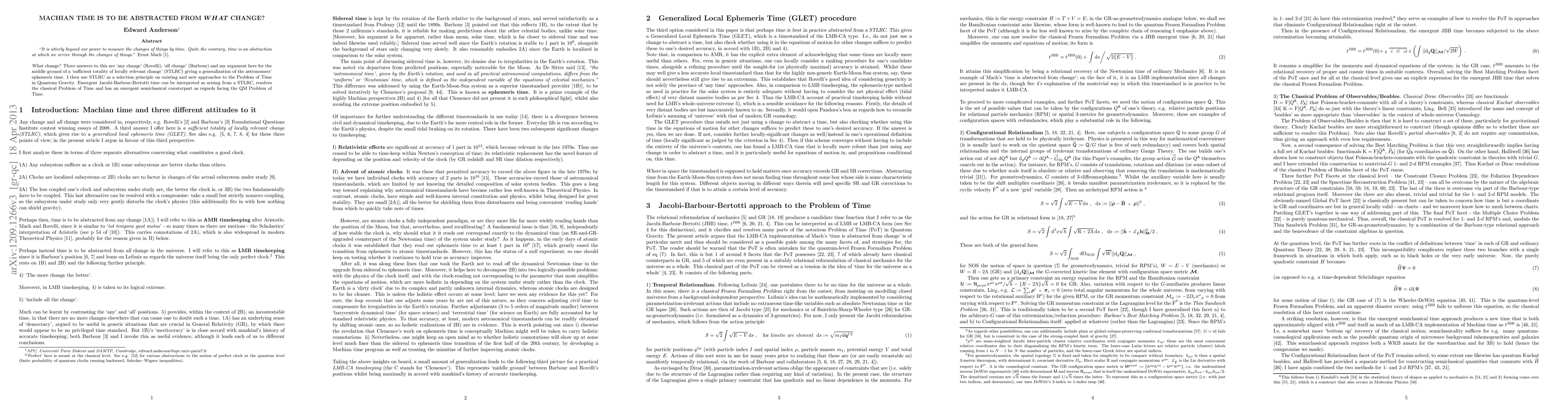 "It is utterly beyond our power to measure the changes of things by time. Quite the contrary, time is an abstraction at which we arrive through the changes of things." Ernst Mach [1]. What change? Three answers to this are `any change' (Rovelli), 'all change' (Barbour) and my argument here for the middle ground of a `sufficient totality of locally relevant change' (STLRC) giving a generalization of the astronomers' ephemeris time. I then use STLRC as a selection principle on existing and new approaches to the Problem of Time in Quantum Gravity. Emergent Jacobi-Barbour-Bertotti time can be interpreted as arising from a STLRC, resolves the classical Problem of Time and has an emergent semiclassical counterpart as regards facing the QM Problem of Time.