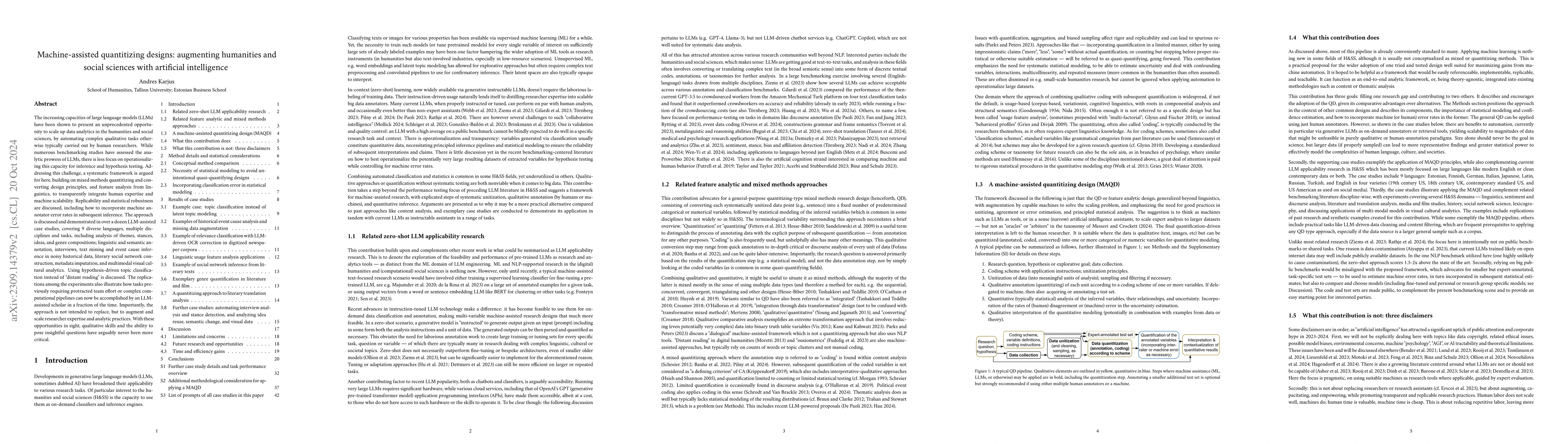 This paper proposes a mixed methods framework leveraging large language models to augment qualitative analysis in humanities and social sciences, showcasing 16 case studies that demonstrate the scalability and efficiency of machine-assisted tasks. It emphasizes the importance of transparency and replicability, and highlights that while LLMs can automate many tasks, they are meant to augment, not replace, human expertise.