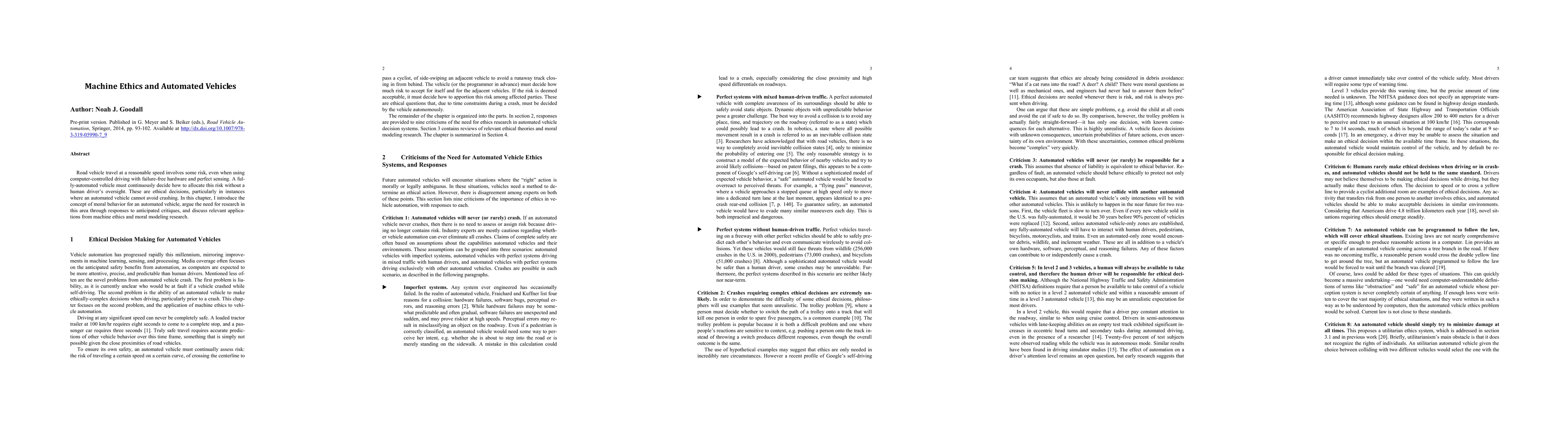 This paper discusses the ethical dilemmas faced by fully-automated vehicles in allocating risk during unavoidable crashes, introducing the concept of moral behavior for such machines and advocating for research in machine ethics to address these critical decisions. It also highlights the importance of incorporating moral modeling from existing machine ethics research.