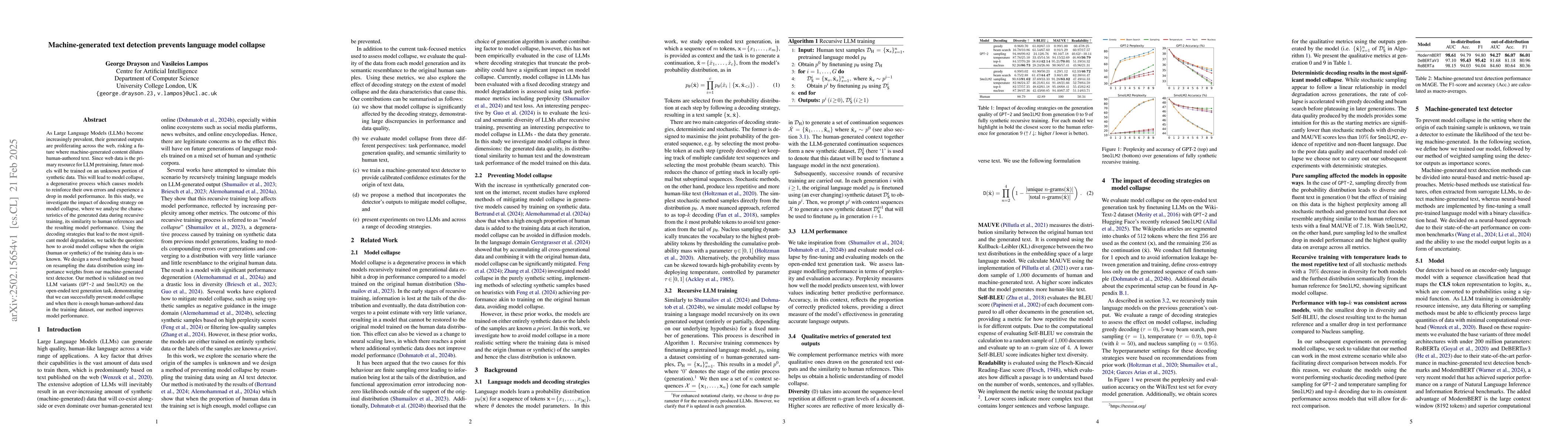 This research is significant as it addresses the issue of model collapse in LLMs, which is becoming increasingly relevant with the proliferation of machine-generated content. By preventing model collapse, the study ensures the integrity and quality of generated text, preserving human-authored content's value.
