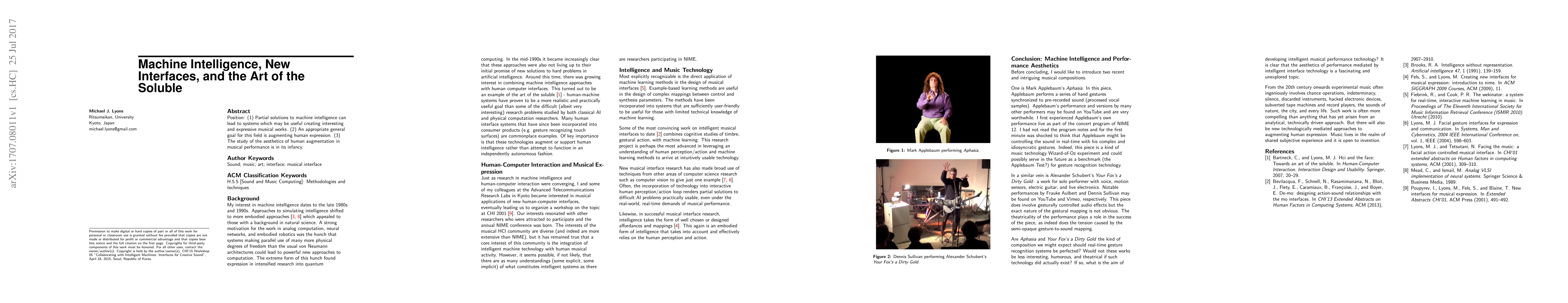 Position: (1) Partial solutions to machine intelligence can lead to systems which may be useful creating interesting and expressive musical works. (2) An appropriate general goal for this field is augmenting human expression. (3) The study of the aesthetics of human augmentation in musical performance is in its infancy.