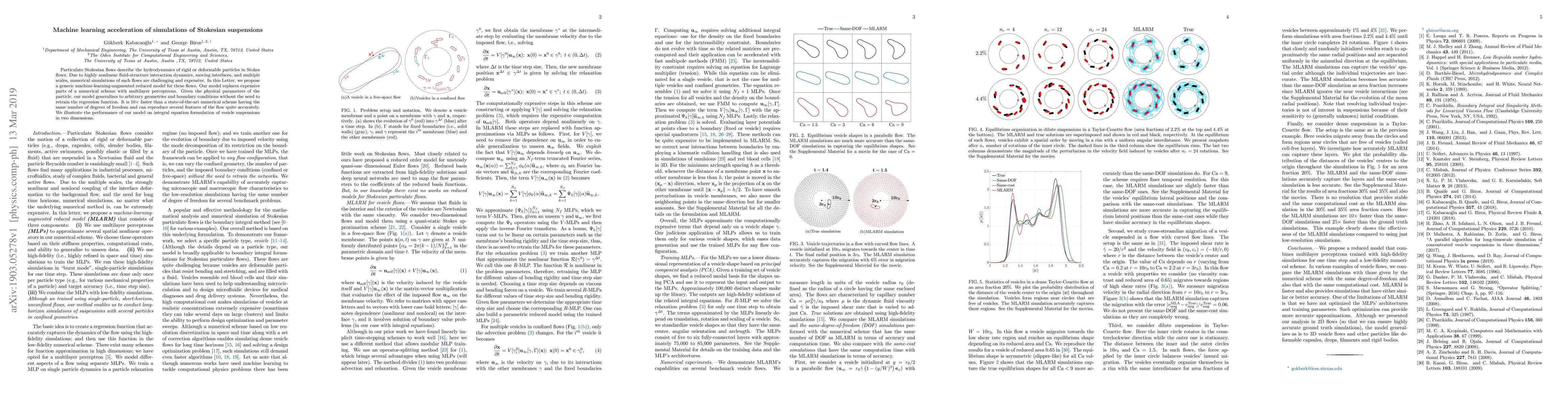 Particulate Stokesian flows describe the hydrodynamics of rigid or deformable particles in Stokes flows. Due to highly nonlinear fluid-structure interaction dynamics, moving interfaces, and multiple scales, numerical simulations of such flows are challenging and expensive. In this Letter, we propose a generic machine-learning-augmented reduced model for these flows. Our model replaces expensive parts of a numerical scheme with multilayer perceptrons. Given the physical parameters of the particle, our model generalizes to arbitrary geometries and boundary conditions without the need to retrain the regression function. It is 10 times faster than a state-of-the-art numerical scheme having the same number of degrees of freedom and can reproduce several features of the flow quite accurately. We illustrate the performance of our model on integral equation formulation of vesicle suspensions in two dimensions.