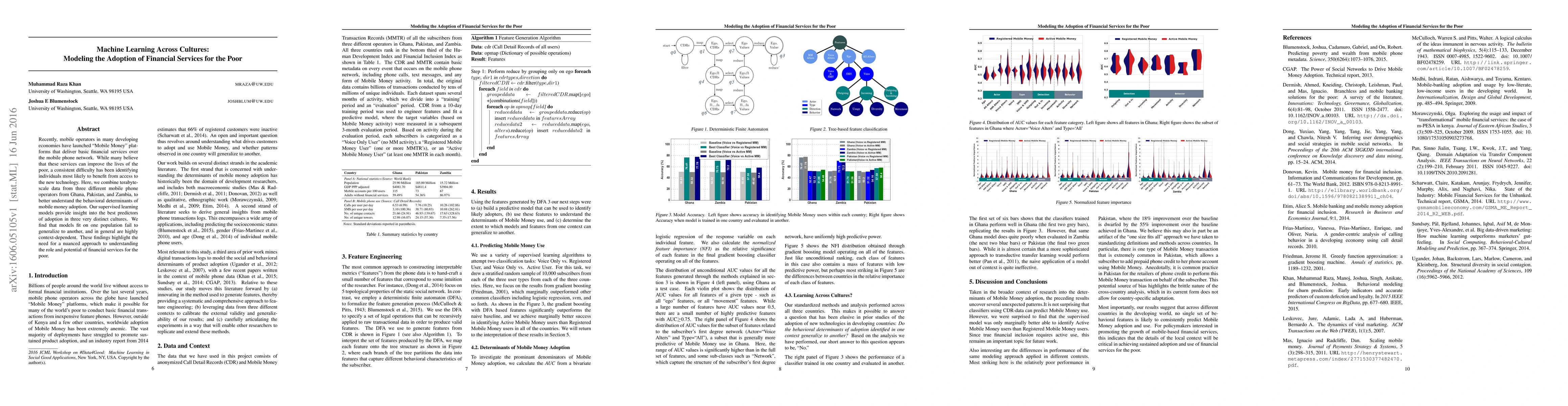 This paper combines large-scale data from mobile operators in Ghana, Pakistan, and Zambia to model the adoption of mobile money services among the poor. The study reveals that predictive models for mobile money adoption are highly context-dependent and do not generalize across different cultural settings, underscoring the need for tailored approaches to financial services for the poor.