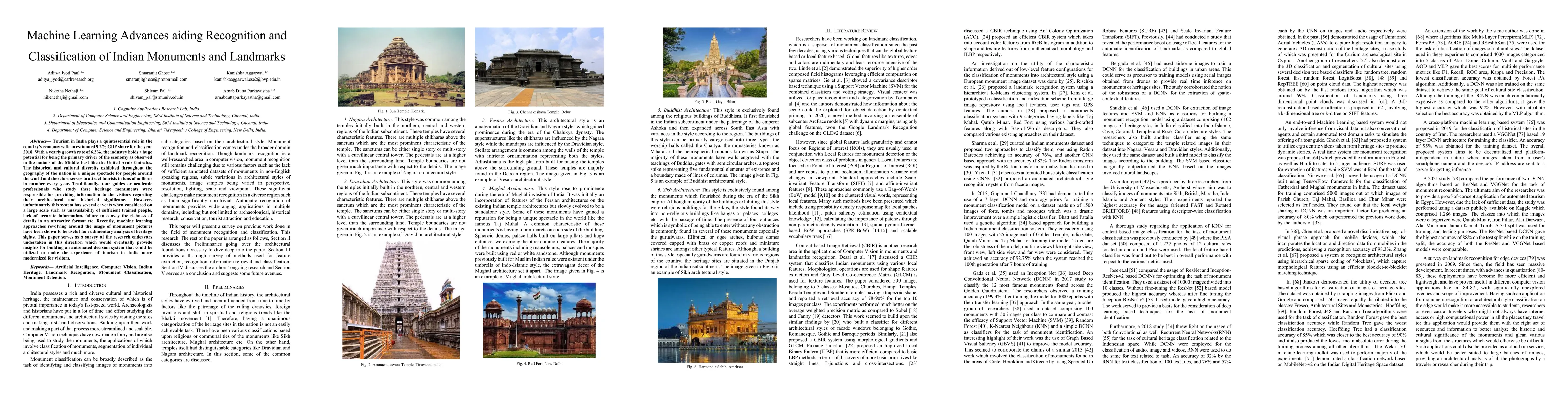 This paper surveys machine learning advancements for recognizing and classifying Indian monuments and landmarks, aiming to modernize tourism by providing automated, large-scale information delivery to tourists, addressing the limitations of traditional guide-based systems.